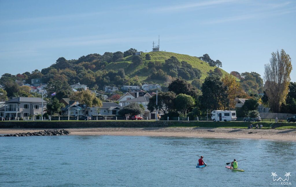 Within Auckland you can use the public transportation network, consisting not only of trains and buses but also ferries to close islands.
