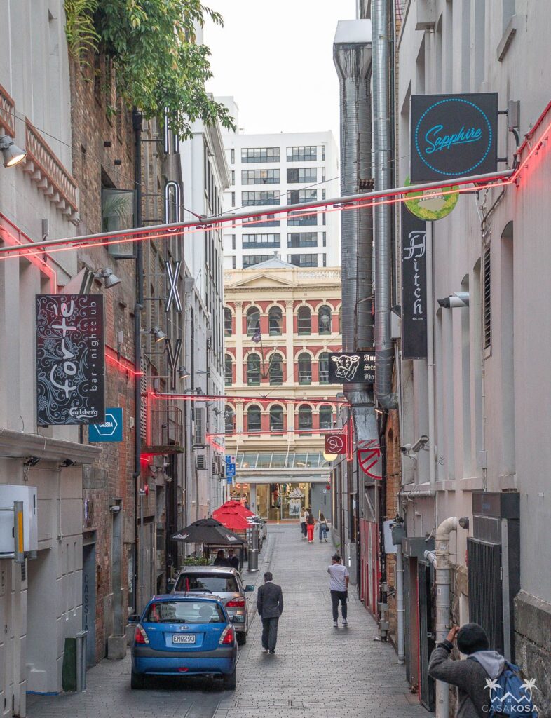 The last night and day of our backpacking trip through New Zealand, we spent time in its biggest city. After the month in the wilderness or small towns it really felt like a huge metropolis. Together with the Australians we did a short bar crawl and had dinner at the local night market.