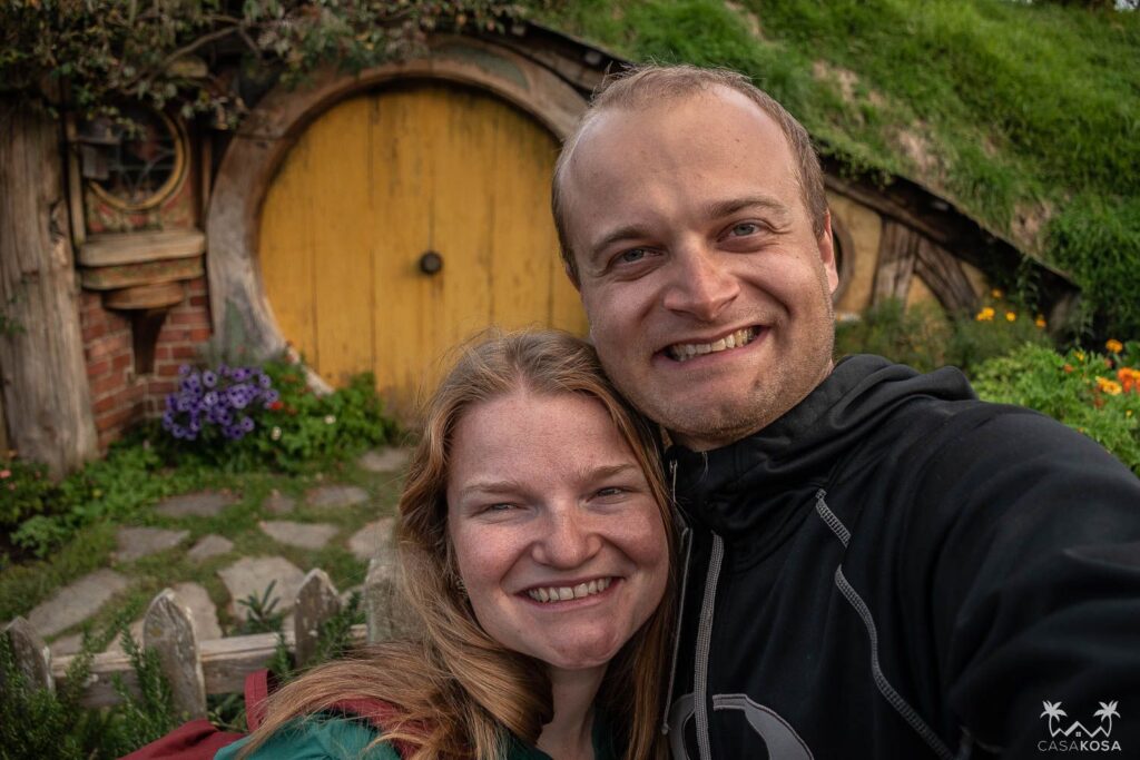 Our next stop when leaving Rotorua was the Hobbiton Movie Set close to a town of Matamata. This place surely doesn’t need any introduction. We had to go there because we promised it to Pepe’s mum, probably one of the biggest LOTR fans. We must admit that this one really is a tourist trap, but quite a cute one. And it’s a showcase of what it means when crazy people do crazy things. Several highlights: