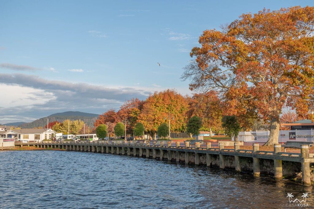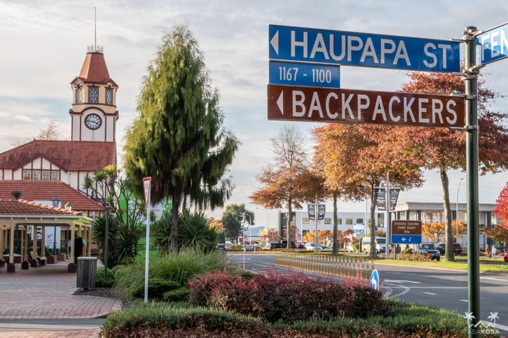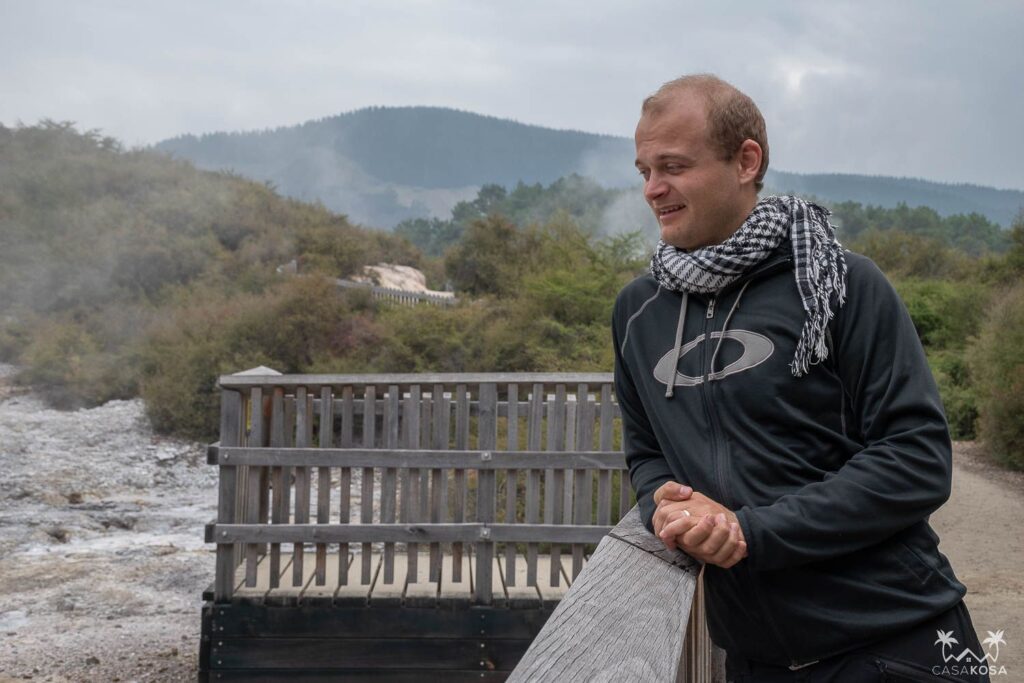 We like walking in every new town or city and Rotorua wasn’t an exception. Maybe it could’ve been, due to the smell. Maybe it should’ve been? Anyway, it’s a peaceful place with interesting architecture and a nice Rotorua lake. But the most fascinating thing were the random geysers and fumaroles we encountered while walking on the lakeside. Quite surreal – we bet your local sidewalks don’t do that!