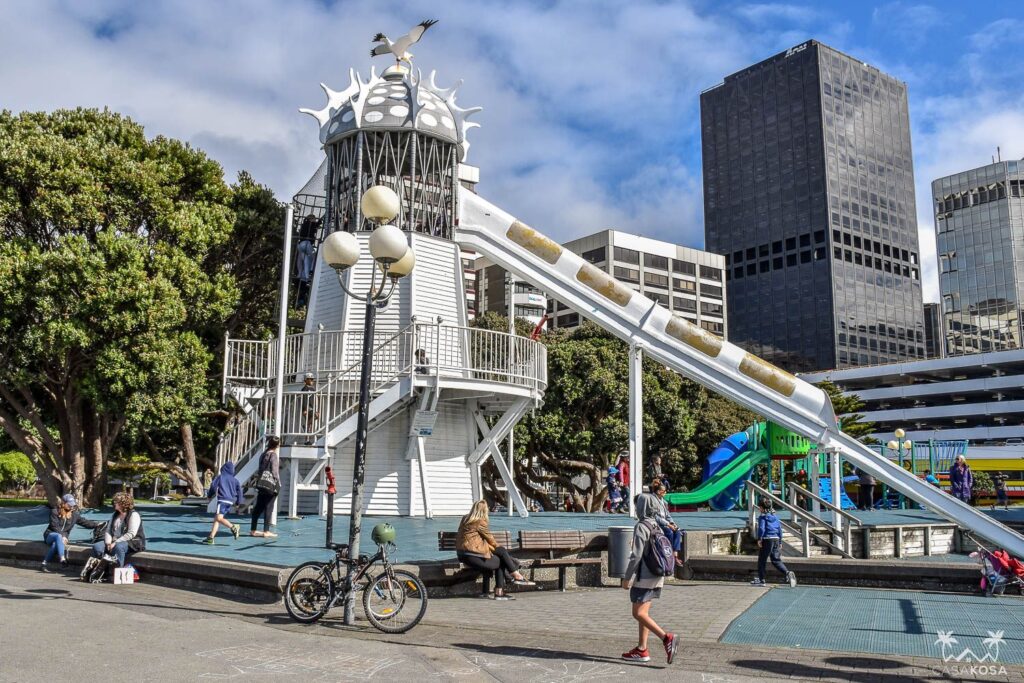 When we come to a foreign city, usually one of the first things we have to do (because of Mia’s obsession) is finding a tower or hill or some place with a view. And getting up there! Since Wellington is quite a hilly city, there are several options. The easiest and closest place to where we stayed is located at the Wellington Botanic Garden – Kelburn lookout.