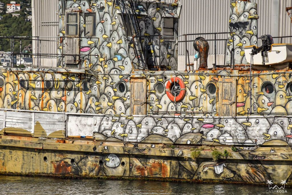 Wellington is full of street art visible on large walls and constructions as well as in smaller and hidden streets as on the pictures below taken just in the street where our hostel was. Don’t you also find it sympathetic when locals try to make their city look more welcoming, lively and colorful? We enjoyed strolling around and discovering various mural art pieces!