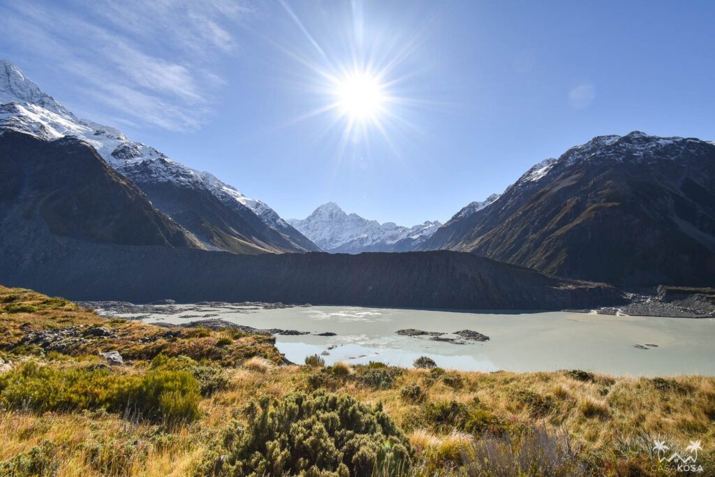 To warm up, we went first to Kea Point. It offers stunning views of Mount Sefton, The Footstool, Hooker valley, Mueller Glacier lake and Aoraki Mount Cook.
