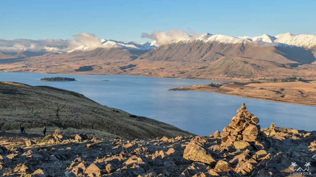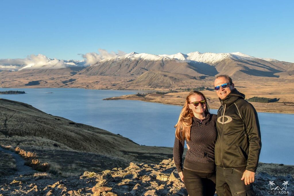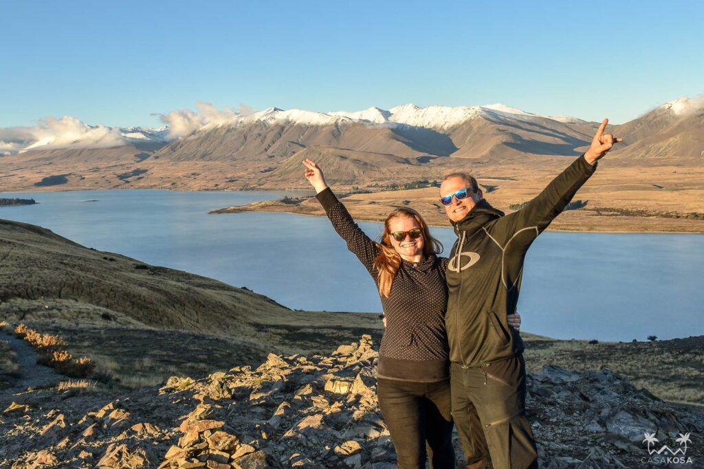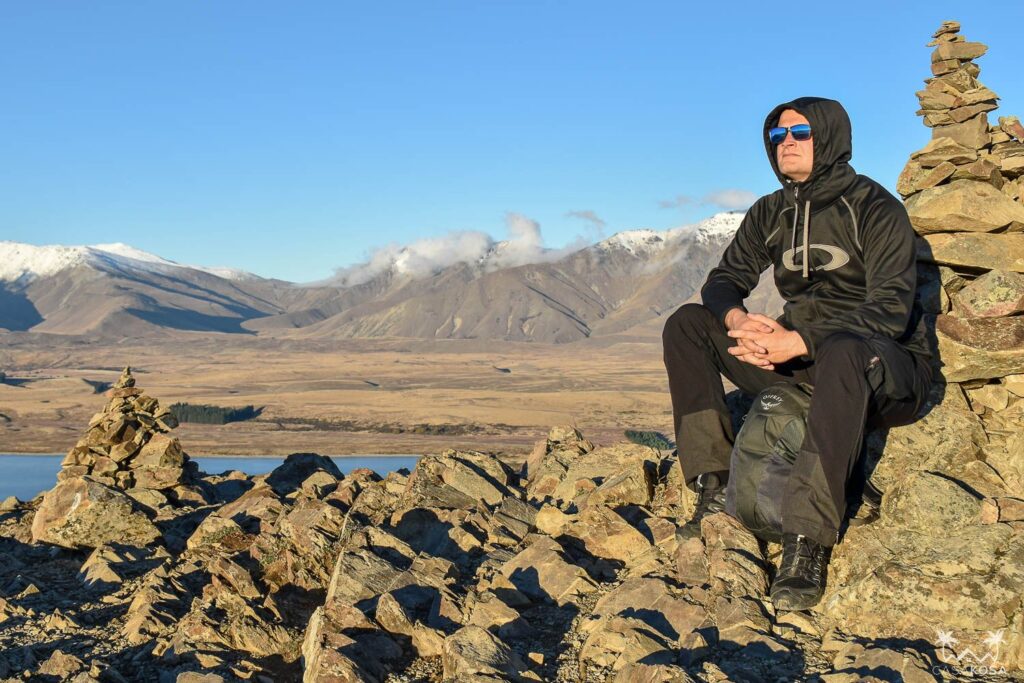 Mt John is the hill overlooking Tekapo. To go to the top and complete the Mount John Summit Circuit Track is an easy 1.5h hike up and down through a forest. This hill offers fantastic panoramic views of the surrounding mountains, lakes and Mackenzie Basin flats. We got there just before the start of the golden hour and watched the sunset with a few other travelers, who were waiting for this glorious time of the day at the hilltop even before we came.