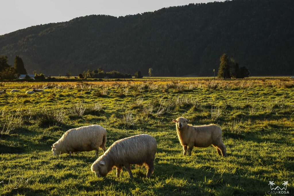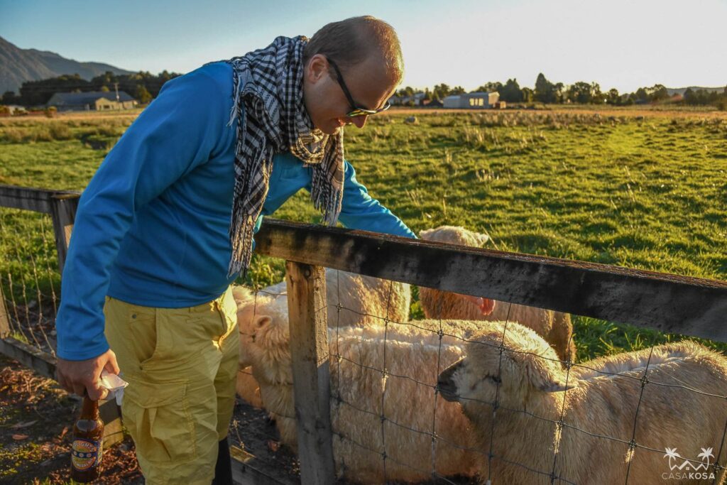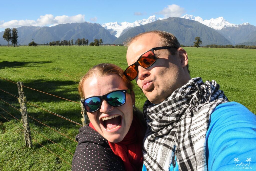 Apart from the glacier, Fox Glacier also stands for a small township with ca 300 inhabitants, several houses, hostels, cafes and tourist offices, plenty of sheep and cows. So being the friendly travelers we are, we’ve spent some time playing with all the local animals we’ve met. And they seemed to like us – to the point we started to think about what we’d say to the hostel staff if that one dog that’s been following us for a good 20 minutes comes all the way to our accommodation :)