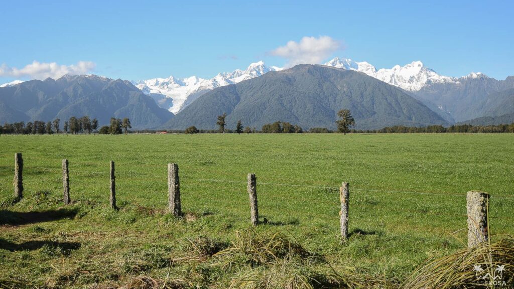 Our first stop was the Peak Viewpoint, 9ish kilometers from the village towards the coast. The views of the Fox Glacier and the Southern Alps (now from the other side than Aoraki Mount Cook National park we visited several days earlier) was breathtaking. It was funny the glaciers and even Mount Cook seemed to be so close, but we were just 10 km from the sea.