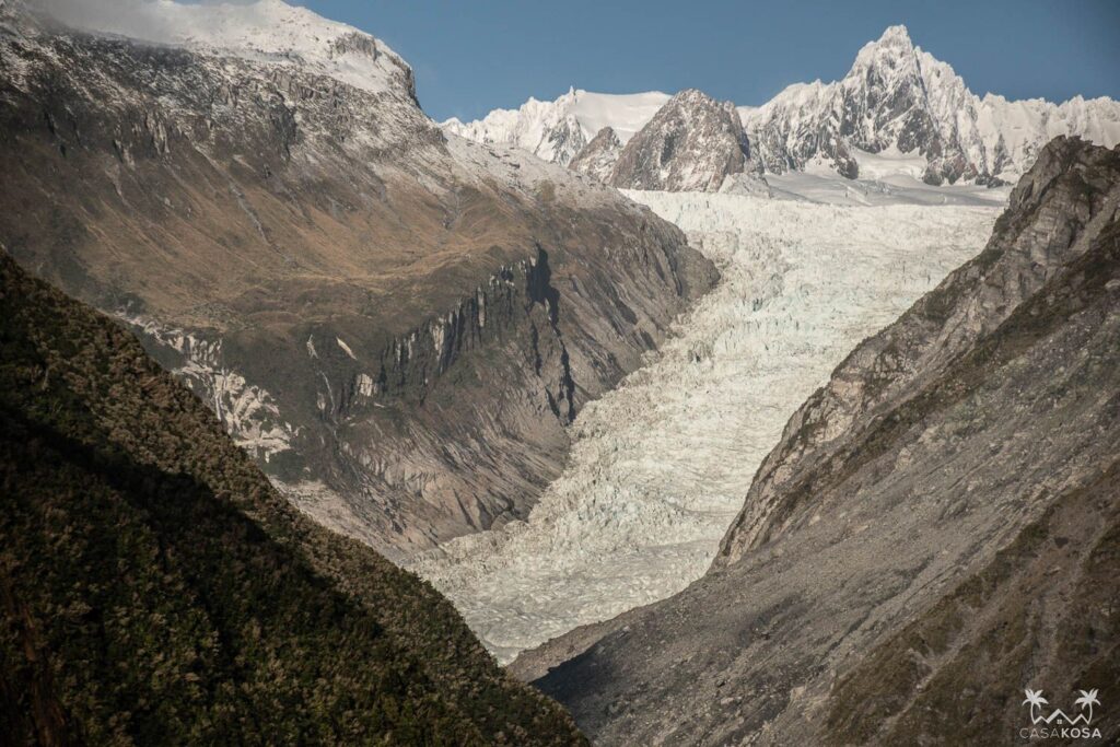 In Wanaka, we hopped on the bus and this time, we had a long 6h long journey ahead of us to reach Fox Glacier, our first stop. Our bus driver was very funny and talkative and told us a few Maori stories about the glaciers and mountains and gave inside info about life in the sparsely populated West Coast, including some local rumors.