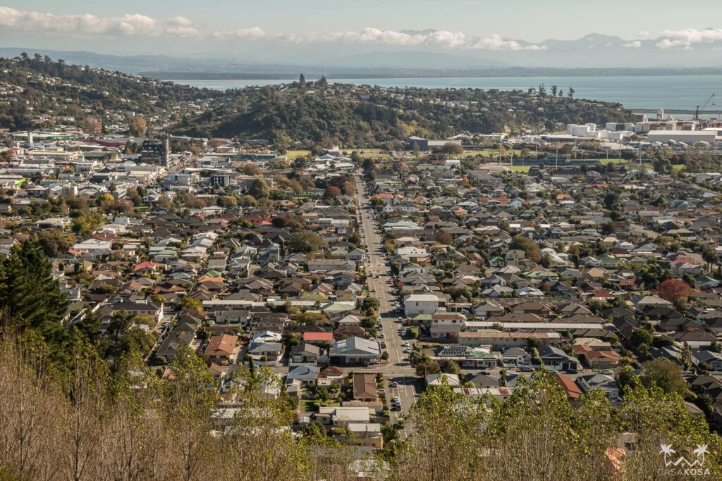The Center of New Zealand is located atop the Botanical Hill in Nelson. You can easily reach the track from the eastern edge of the city center. We must admit the hilltop views are fantastic – you can see the city, Tasman Bay and green valleys all around.