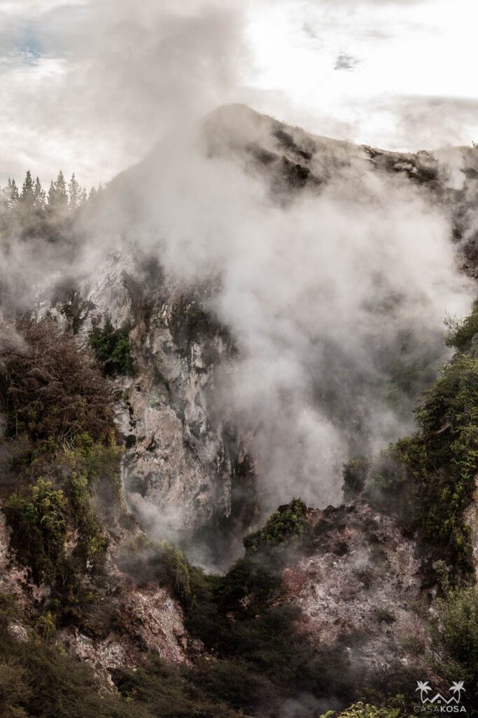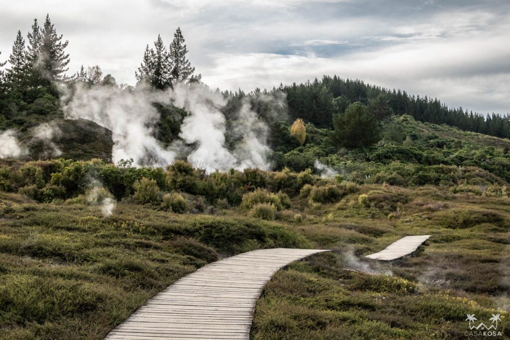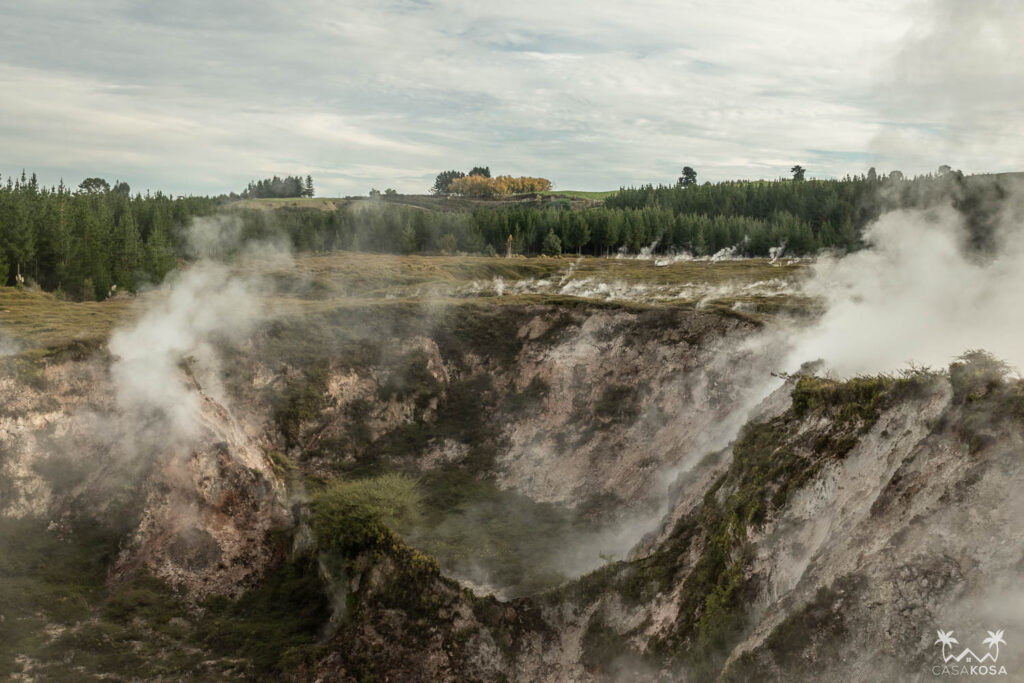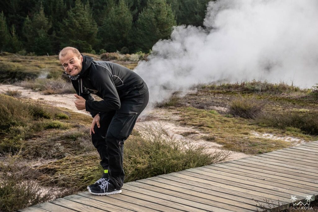 From Huka Falls, we continued cycling to the geothermal park above Taupo with a mystical name Craters of the Moon. There is a minimal incline to get there and Mia was already complaining that she must be the unluckiest biker alive since she had picked the WORST bike again. Luckily, the complaining lasted just for something over 3km. We bought our ticket at the entrance and then entered this surreal and peaceful place. There were almost no other tourists present, only the silent wheezing of the craters and sulfur smell from the fumaroles in this very active volcanic area. But as we learned later, this smell was nothing compared to… Wait for it!