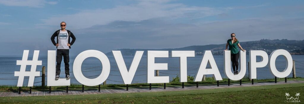 Unfortunately, we didn’t have time for a lake cruise this time. But after biking back to the town we’ve spent some quality time at the lakeside. And took a photo with the popular Taupo sign :)