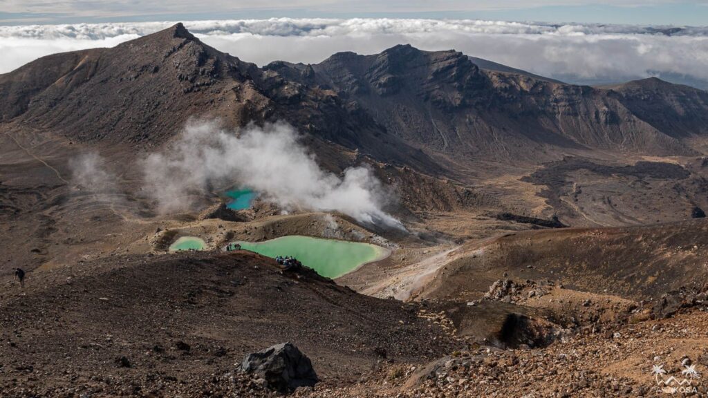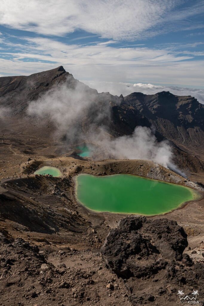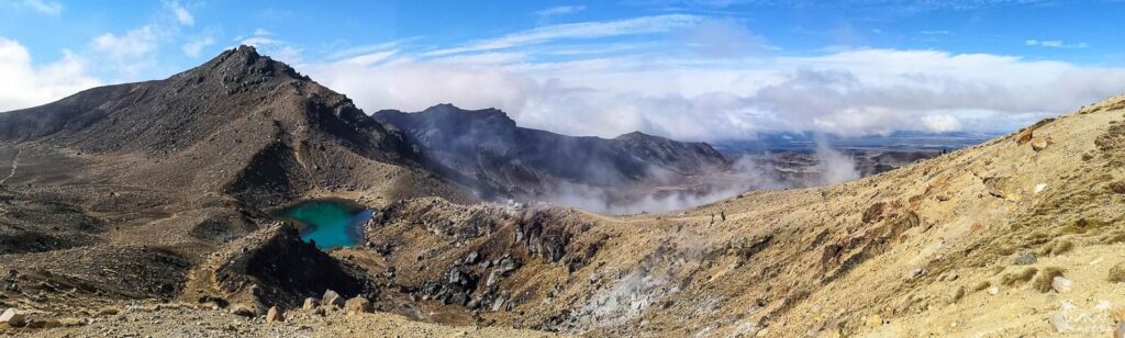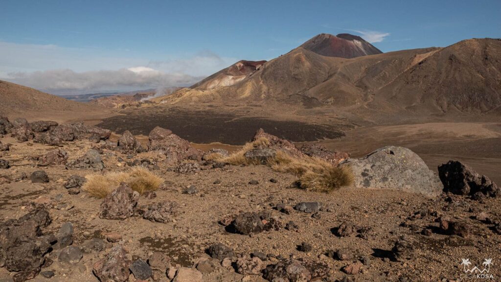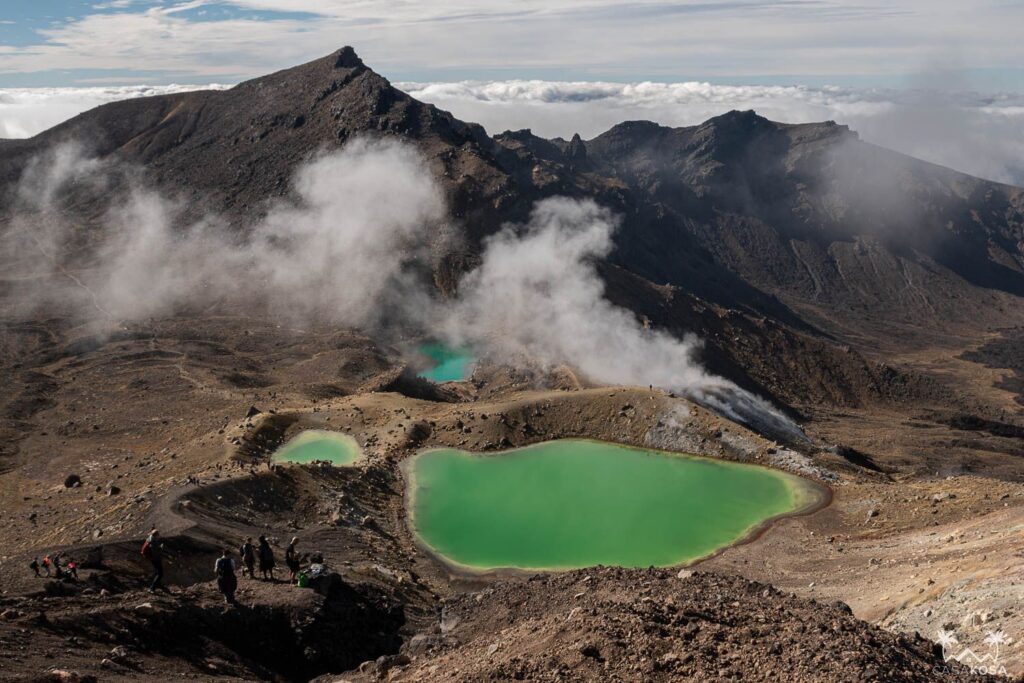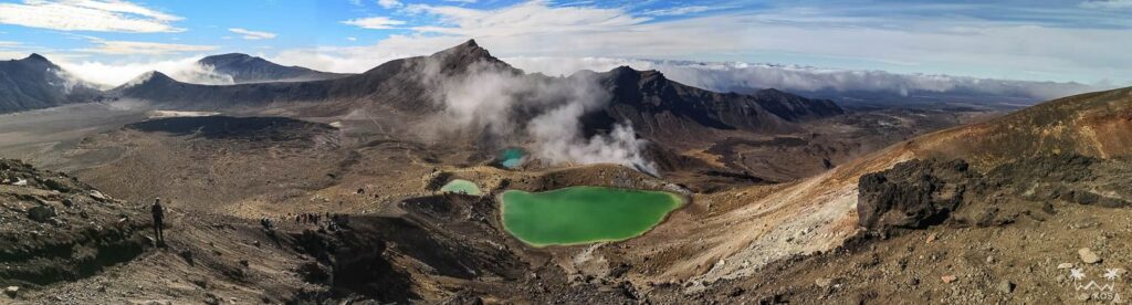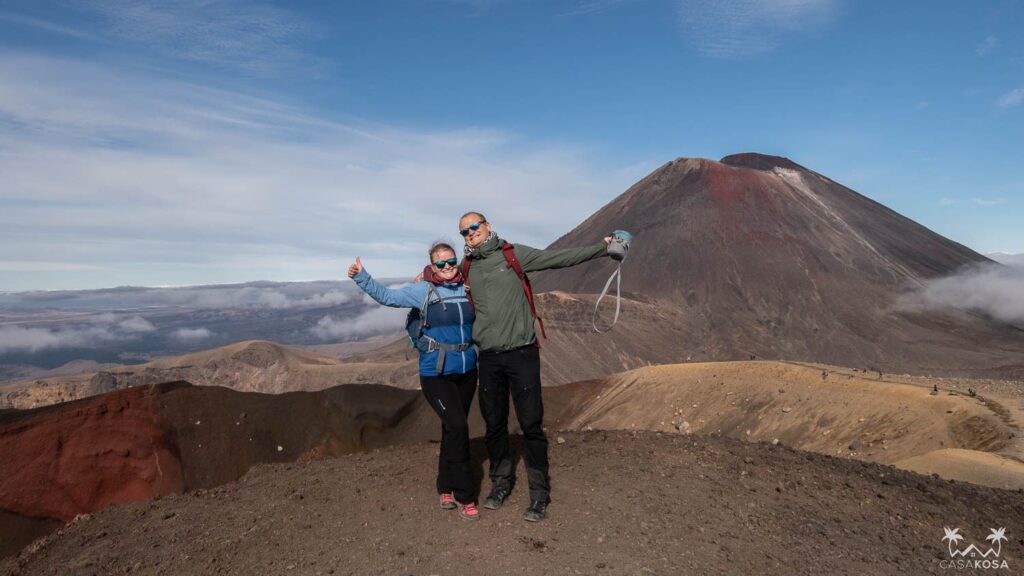 Tongariro Alpine Crossing is the official name of the famous 19.4km long track (but we somehow walked 25, no idea how or why) and was our longest day hike in New Zealand. We walked through the dramatic volcanic alpine landscapes with glacial valleys, old lava rocks, craters and crater lakes and all of this of course with the conical beauties towering above us.