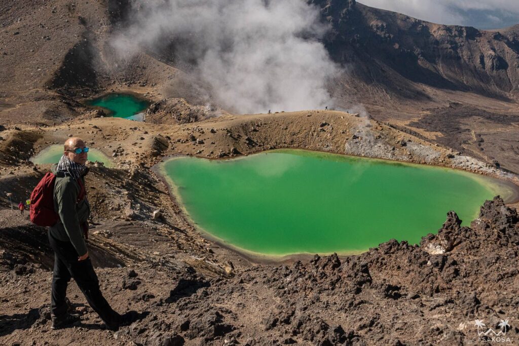 From the Red Crater we could enjoy spectacular views of the valleys, deserts and ranges but most of all, we spotted the main reason (for Mia) to come up here – the three stunning and vividly blueish-greenish Emerald Lakes as well as a glimpse of the Blue Lake a bit further and higher away. Yay! (Pepe enjoyed mostly snacks. Yay!)