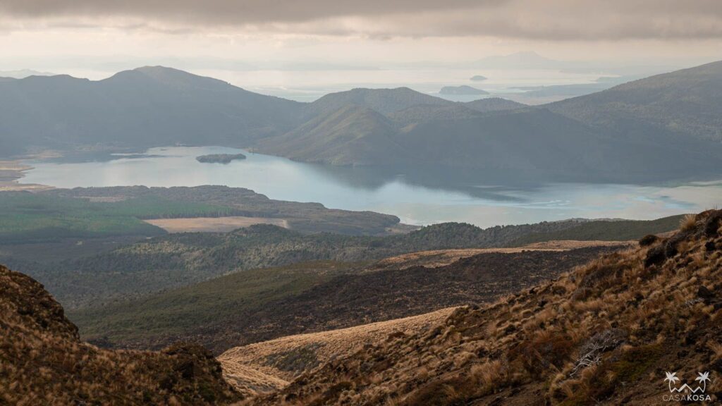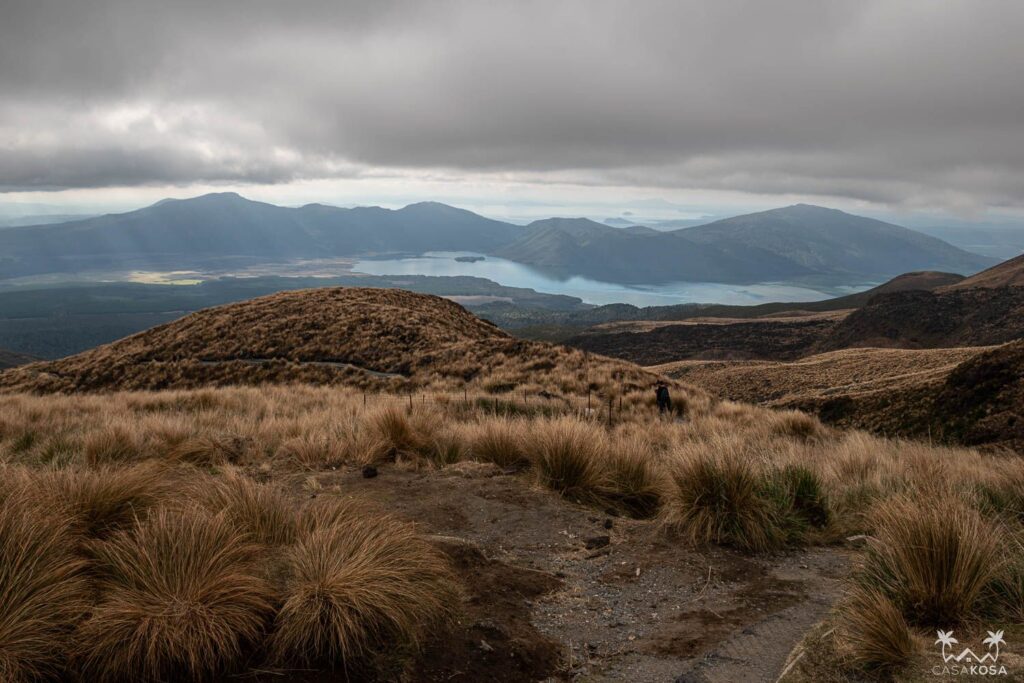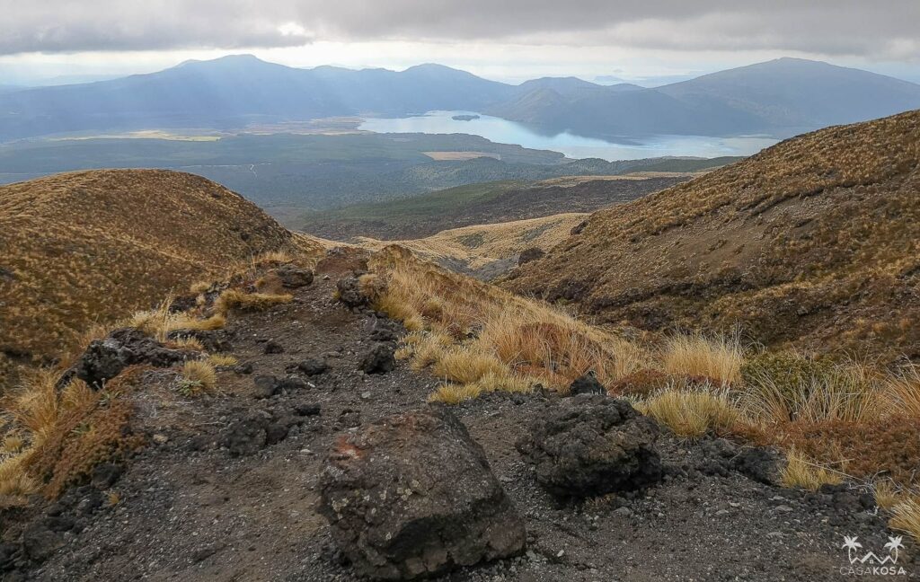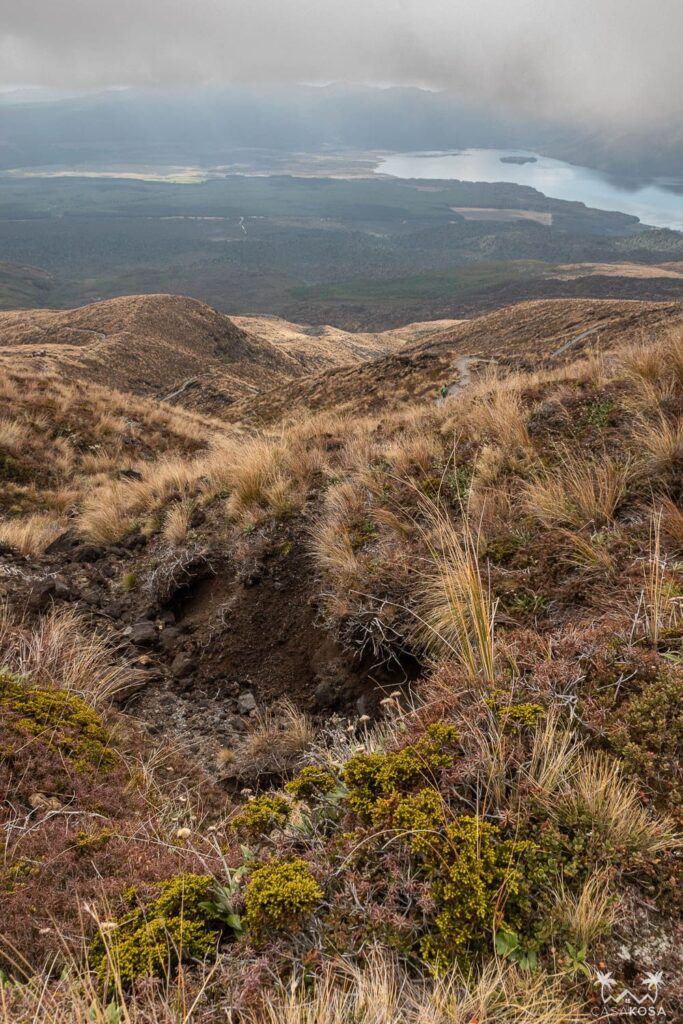 After a break and several thousands photos we had to continue further in order to finish the track in a reasonable time to catch our van. The rest of the track, after passing the cold acidic Blue Lake, was less exciting as we started with boring and never ending 6 km long zigzag descent to 760 m. However, the flora on the way was quite fascinating, the sky looked very dramatic and so did valley vista, mountains and Lake Rotoaira across to Lake Taupo. Last steps through a forest and we reached the end mark :)