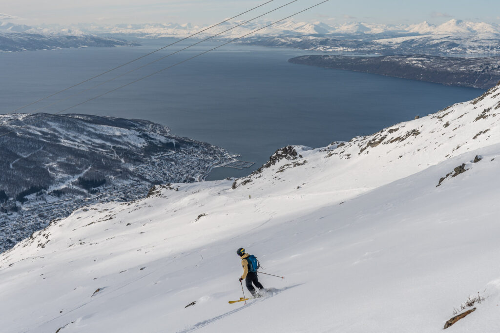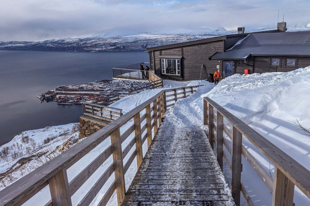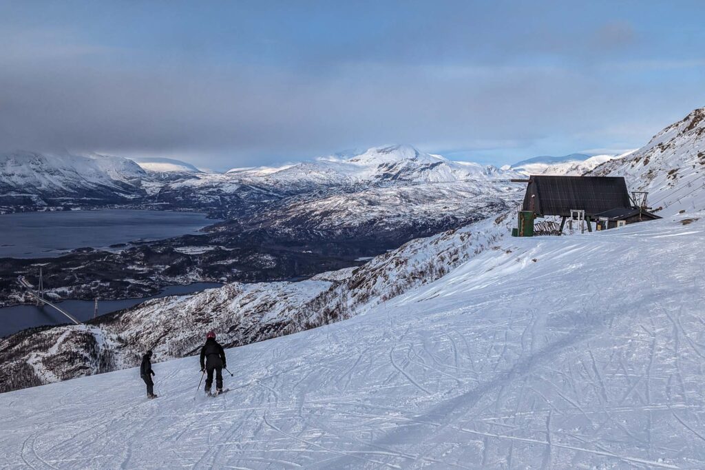 Lyžovanie dole smerom k mestu a moru je ňuňu, také v Alpách nemáme. Dominantou výhľadu je prístav na prekladanie železnej rudy z Kiruny, ktorý vypadá trochu ako Isengard z Pána prsteňov. Má kapacitu 20m ton železnej rudy ročne, čo znie ako veľké číslo. More tu nezamŕza, a tak sem môžu chodiť nákladné lode z celého sveta zobkať rudu po celý rok. Síce sme nevideli ako, ale vraj je prístav veľmi hitech a celý vlak dlhý 68 vagónov plných rudy vie vysypať do zásobovacích podzemných síl za 6 minút.