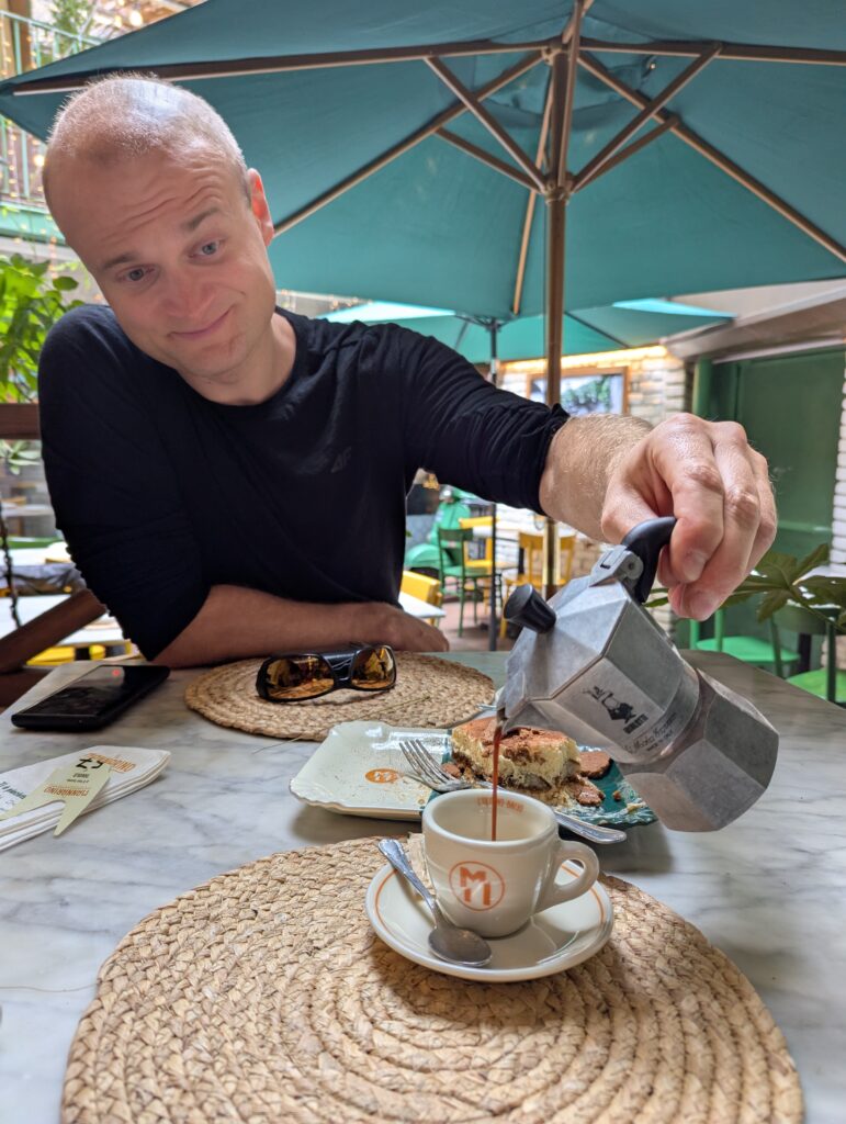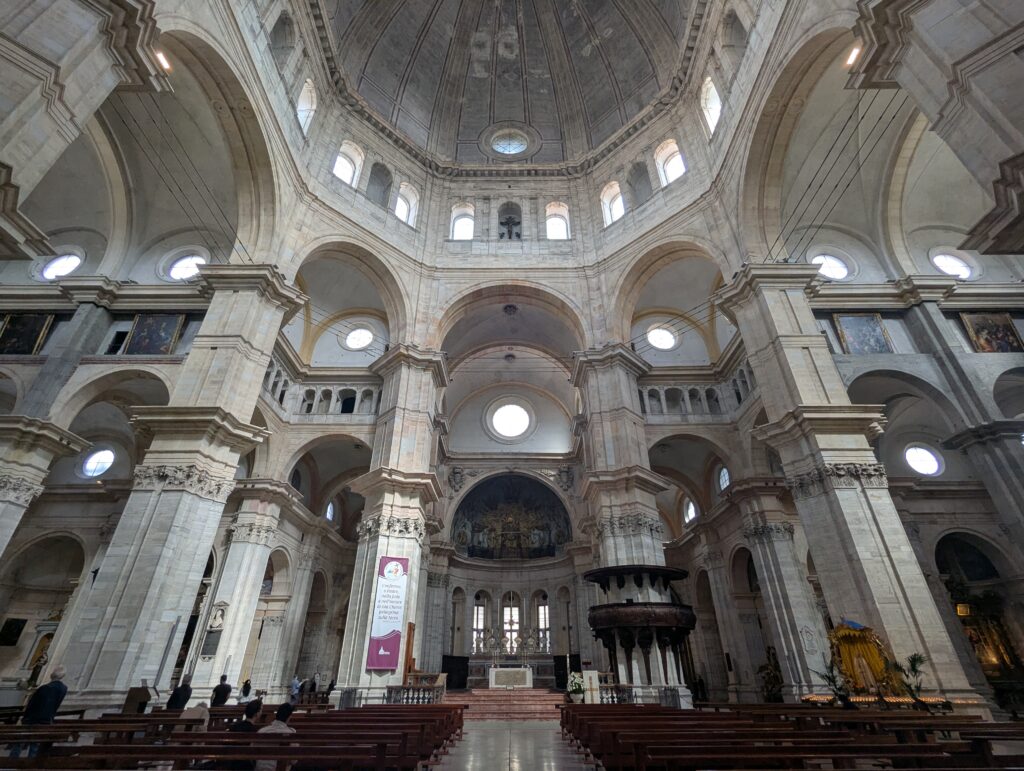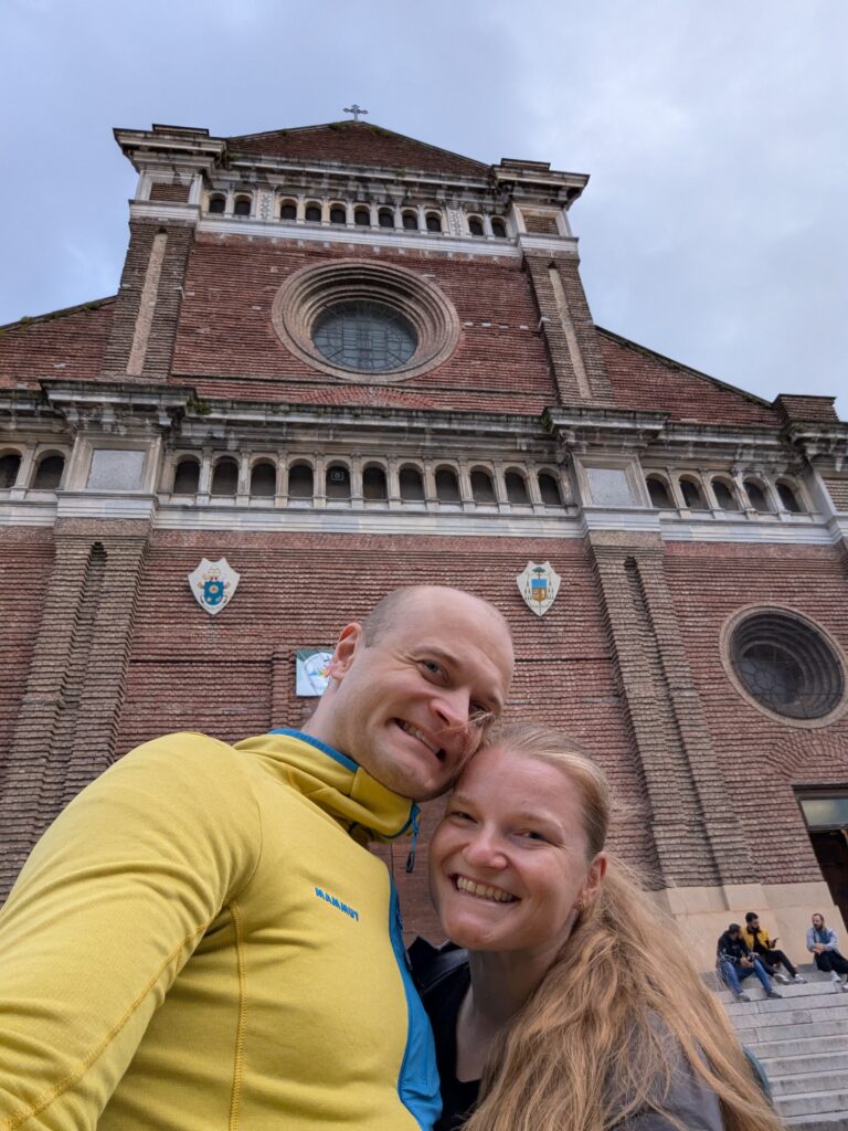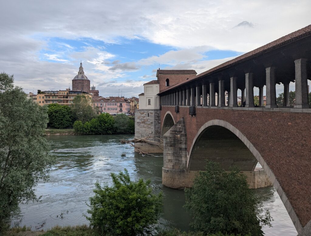 V Pavii majú aspoň 3 veľké kostoly, ktoré sú ale veľmi podobné a pozrieme si na striedačku len jeden z nich, Cattedrale di Santo Stefano e Santa Maria Assunta. Na striedačku preto, že ešte neveríme lokálcom natoľko, aby sme nechali naložený ručne poskladaný karbónový bajk nestrážený pred vstupom. Dávam tomu deň alebo dva a budeme s tým asi viac stotožnení (a #swissvibecheck, aj tak sú poistené) a budeme si môcť vychutnávať pohľady na oltáre obťažkané bustami pápežov spoločne.