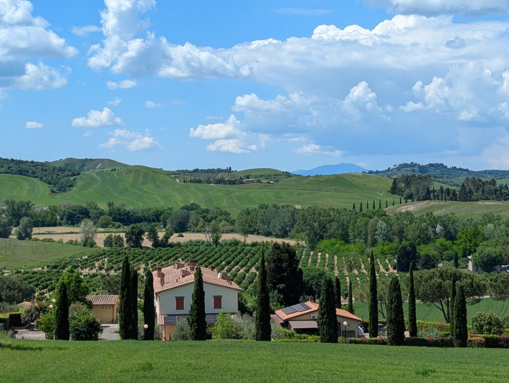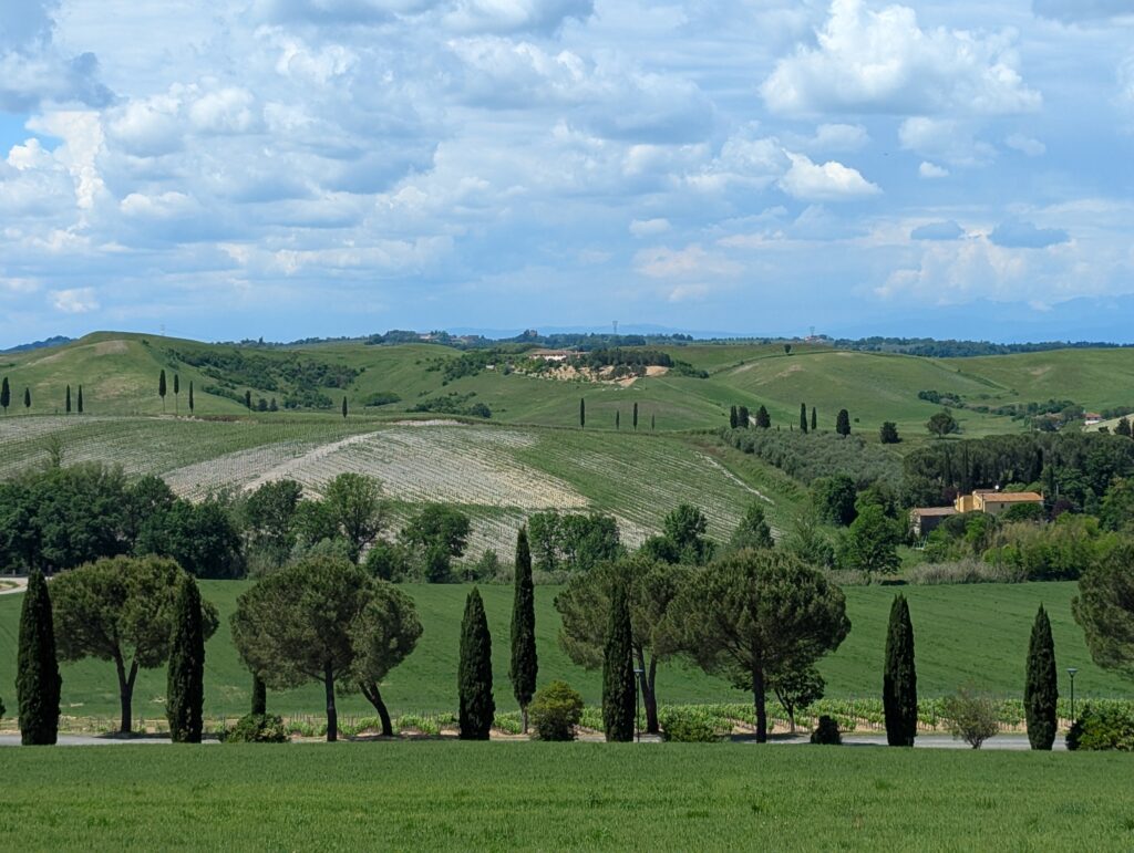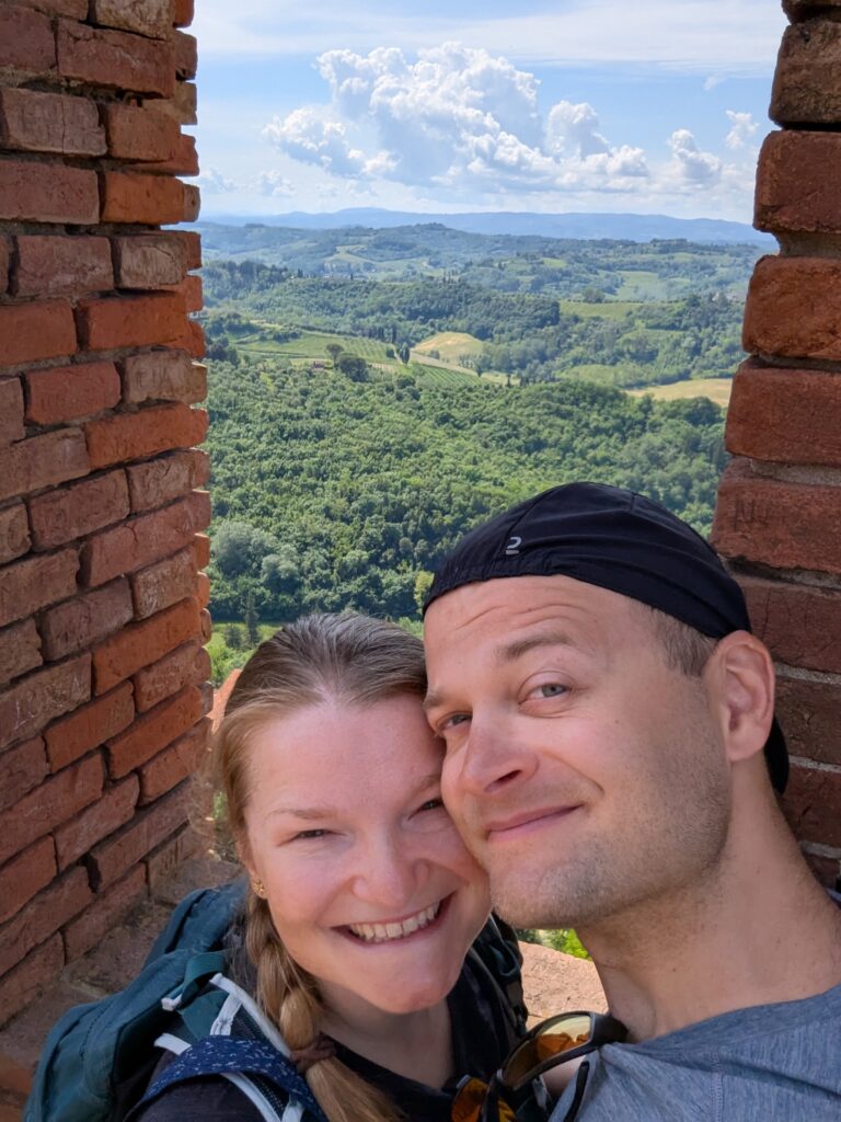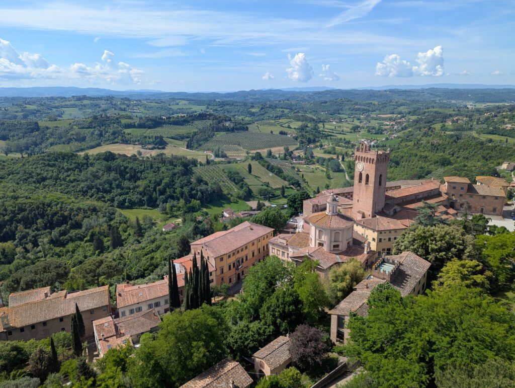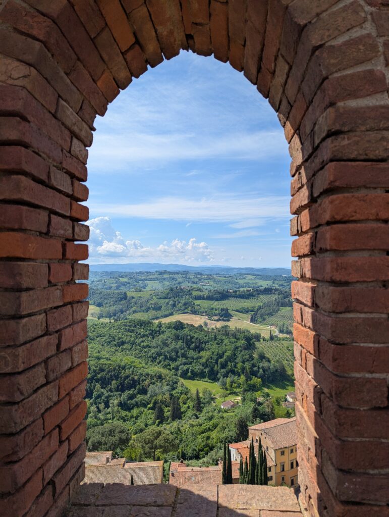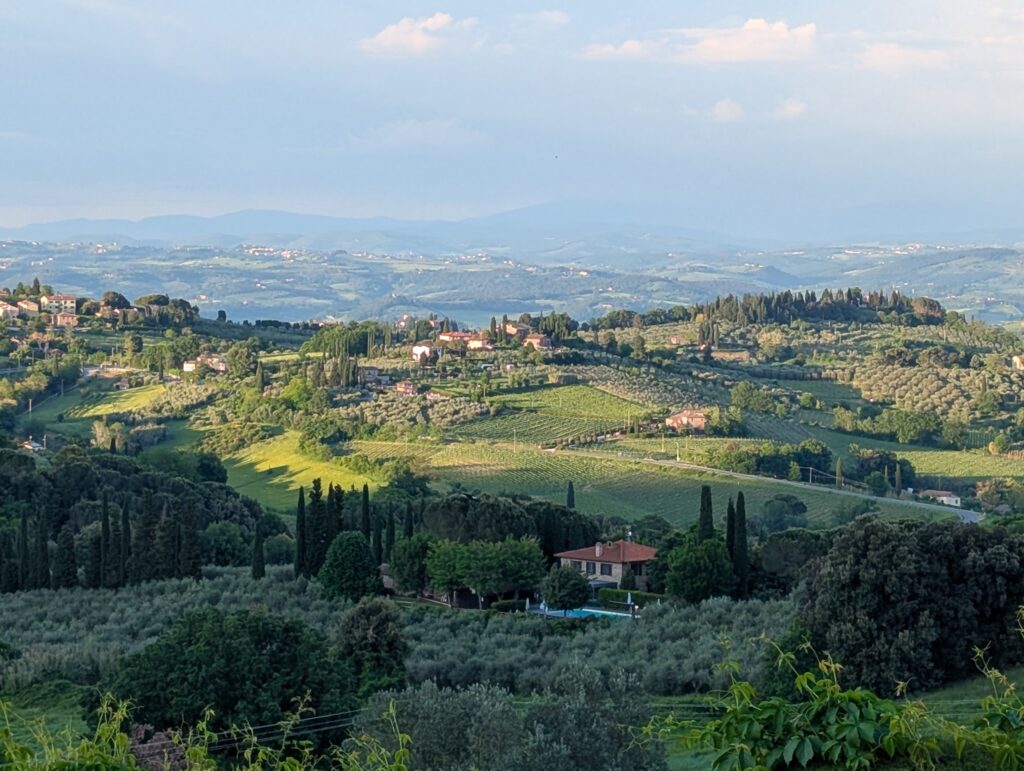 Highlight dňa je San Gimignano. Tu sme boli pred x rokmi s rodinou a fotka od fontány nám pyšne zdobí obývačku. Na hlavnom námestí sú 2 zmrzlinárne, ktoré sa hrdia, že majú najlepšiu zmrzlinu na svete. Ťažko povedať, ideme do tej, kde je dlhší rad a lepší Google map rating. Je dobrá, ale asi sme už v 🇮🇹 mali lepšiu.