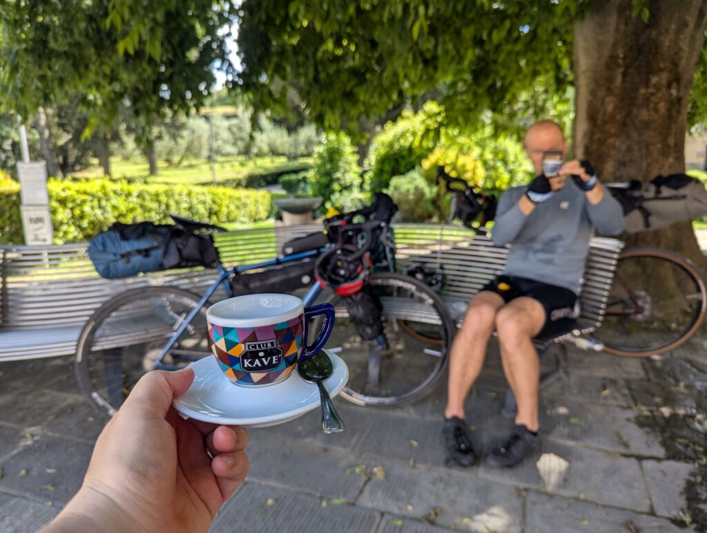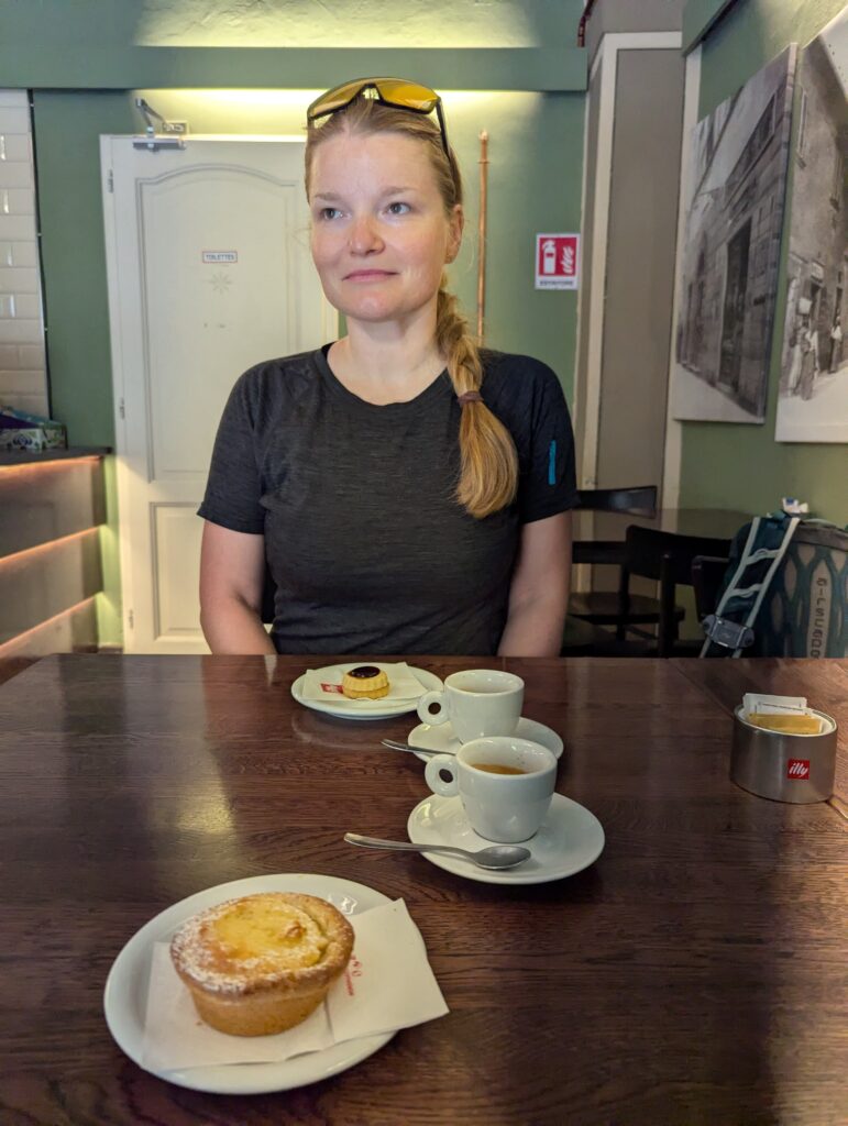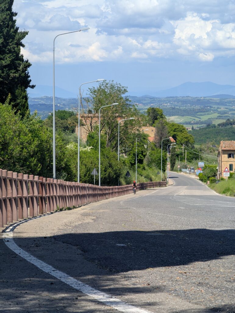 Z mesta ide zjazd a dlhá rovina. Pútnikov a cyklistov dnes vidíme skoro nula, všetci asi sedia pri nedeľnom obede alebo v albergoch. Dnes máme oddychový deň (teda aspoň tak ho Mia nazvala), tak nás čakajú 3 stúpania s kumulatívnymi 900m. Nakoniec to aj tak bolo viac, neviem kde sme nahnali ďalších 300 🤌🏼