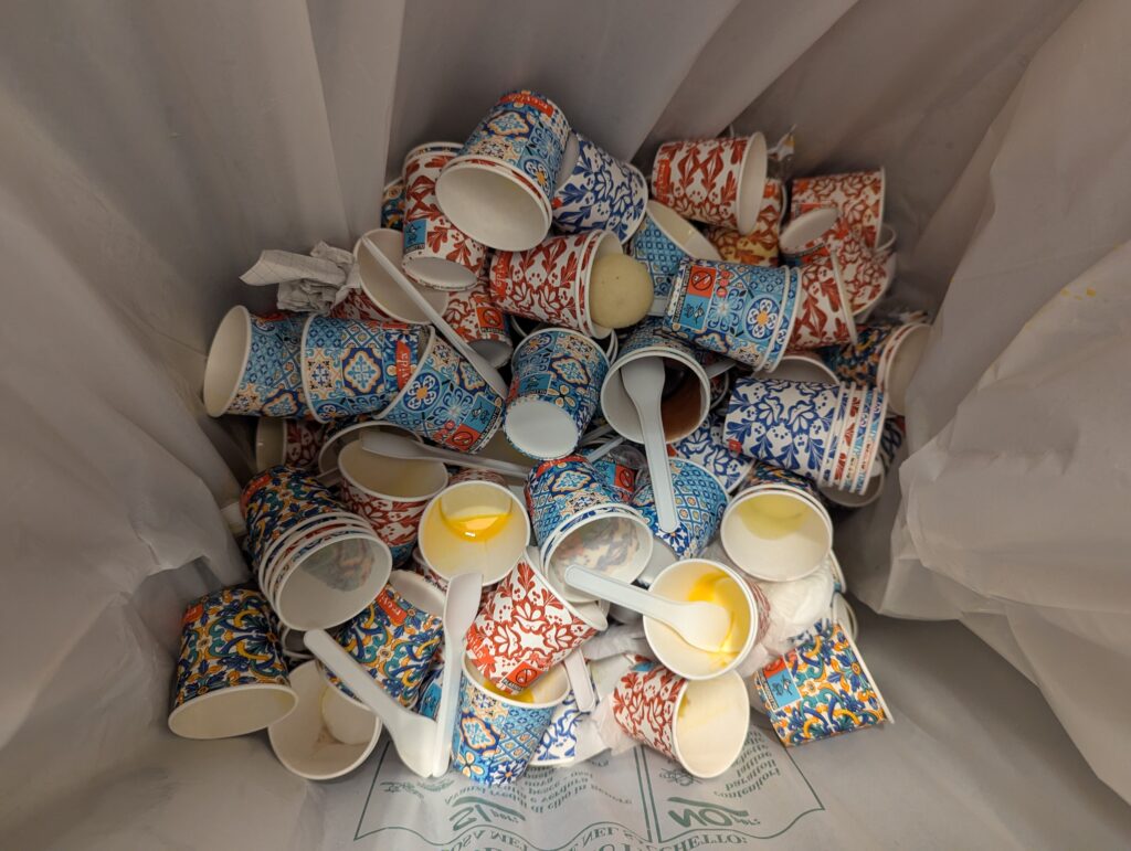 Plán optimalizácie bol odniesť zabalené krabice na kolobežke k Alibusu, ktorý nás donesie za 2×5 eur na letisko. Bus chodí každú chvíľu, ale dáko chodia všetky napratané po strop, a tak začíname pochybovať. Pochybnosti zosilnia so silnejúcim dažďom a pohľadom na rad ľudí čo stále čakajú na nalodenie pred nami. Nakoniec si zoberieme taxík, lebo si netreba zbytočne komplikovať život.