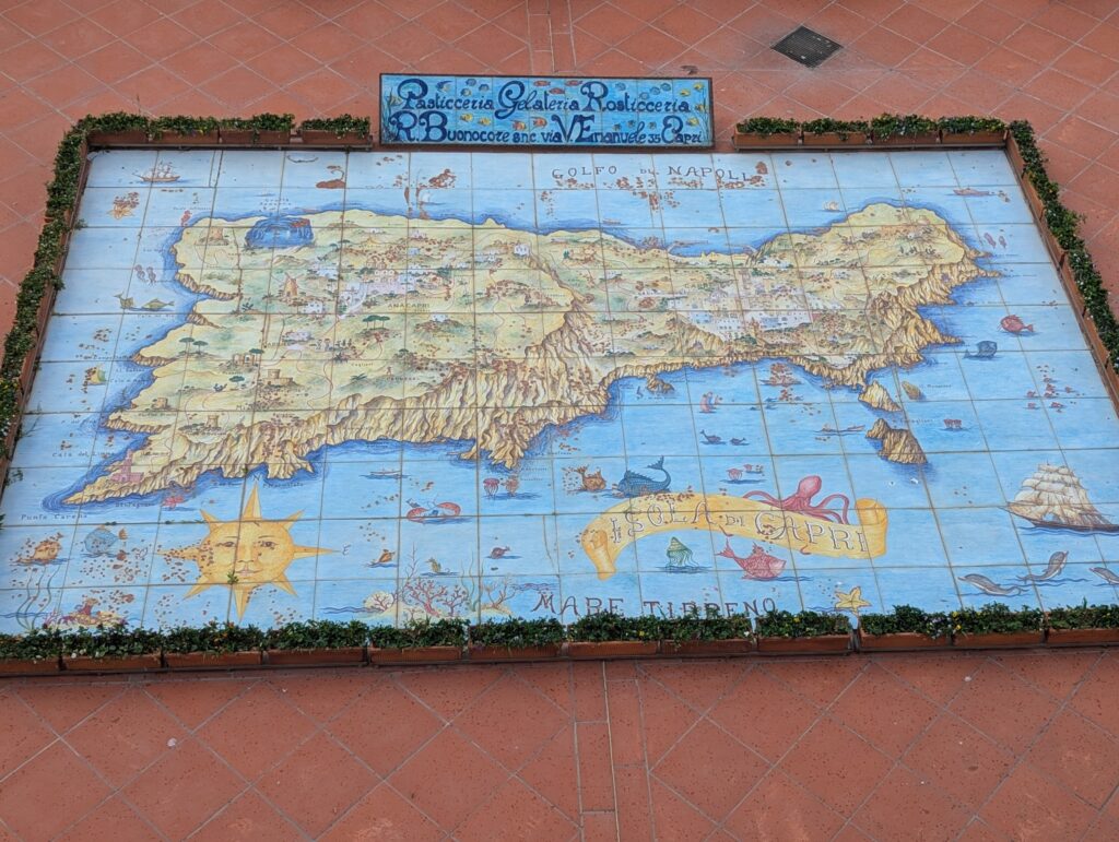 Druhý deň ideme loďou do Sorrenta, lebo Mia si myslí, že to bude topka. Rovnako si to mysleli aj milióny škaredých, poväčšine amerických turistov, ktorí sa sem dotrepali a následne sa bezprizorne potulujú mestom, ktoré všetkým tým davom nemá moc čo ponúknuť. Jediné, čoho tu je dostatok, sú suvenírshopy všetkých možných variant, predávajúce citróny šťastia, keramické citróny, veľké citróny, ktoré nesmiete chytať, mydlo v tvare citrónov, citróny na potenciu a citróny s vodkou, inak známe ako limončelo alebo limončíno (sú to 2 rôzne veci, ale pre slovenského čitateľa je rozdiel podobne dôležitý ako rozdiel medzi krabicovými vínami Don Simon a Sladká pani). Dáme si kávu, morské potvory na obed, pozrieme rýchlo jednu galériu miestneho známeho fotografa (nepoznali sme) a ideme ďalšou loďou. Tentokrát na ozajstný ostrov.