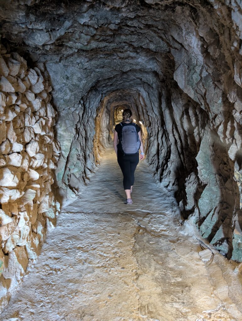 Posledný stop je dáka vyhliadka, delostrelecké batérie a tunely. Tunely sú vlastne múzeum, najprv si pozrieme staršie, viac menej najstaršie, a neskôr novšie, viac menej najnovšie. Tie prvé vŕtali keď chceli strieľať na Španielov utáborených v La Línea, tie druhé počas WW2, diamantovými vrtákmi z Kanady a stabilizovali ich striekaným cimentom, čo vynašli Švajčiari. Počas WW2 vysťahovali všetkých obyvateľov, ktorí nepomáhali v armádnom snažení, rozšírili pristávaciu dráhu (aby mohli stade štartovať lietadielka Spitfire; predtým nemohli rozširovať, lebo im do toho kecali borci z klubu konského póla, čo mali vedľa ihrisko) a celkovo robili kopec vecí, ktoré by kľudne naplnili jedno veľké múzeum sídliace v tuneloch. Jedno zábavné číslo za všetky – dokopy bola v tuneloch kapacita na pobyt 16 tisíc ľudí.