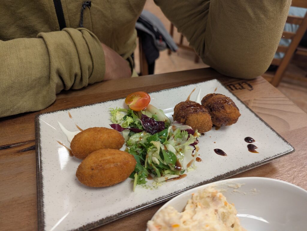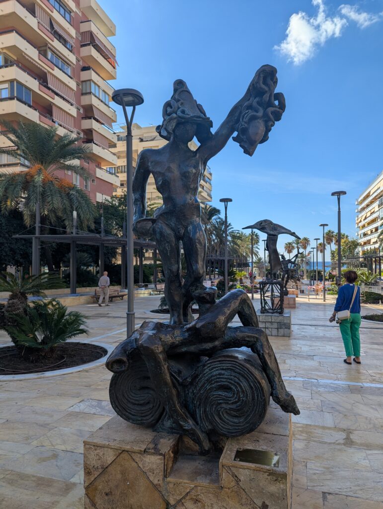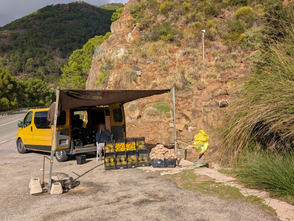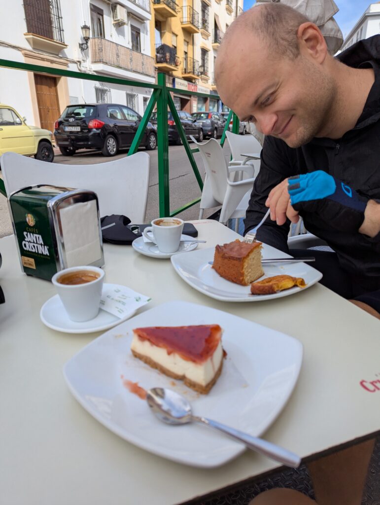 Nasýtení Marbellou sa ráno pristavíme v hipsterskej kaviarni Kofeín (aj by nám k tomuto poznaniu nestačilo vidieť ceny na jedálnom lístku, tak nás o tom uistili vedľasediaci founder-bráškovia s MacBookmi, ktorí diskutovali, ako vzdialene pracujú pre firmu, ktorá používa umelú inteligenciu na disrupciu niečoho v korporátnom svete – použili veľa slov, ale 100%tne to bol len zabalený chatgpt). Následne v železiarstve, kde dokúpime gumicuky na ghetto batožino-baliace techniky, ktoré idem implementovať. A nakoniec pri Dalího sochách, ktoré úspešne nepochopíme a toto nepochopenie nás nabije energiou na nastávajúce stúpanie.