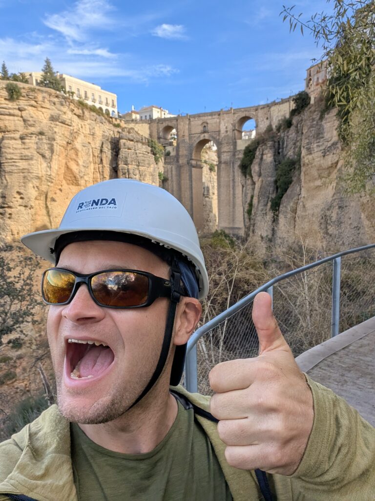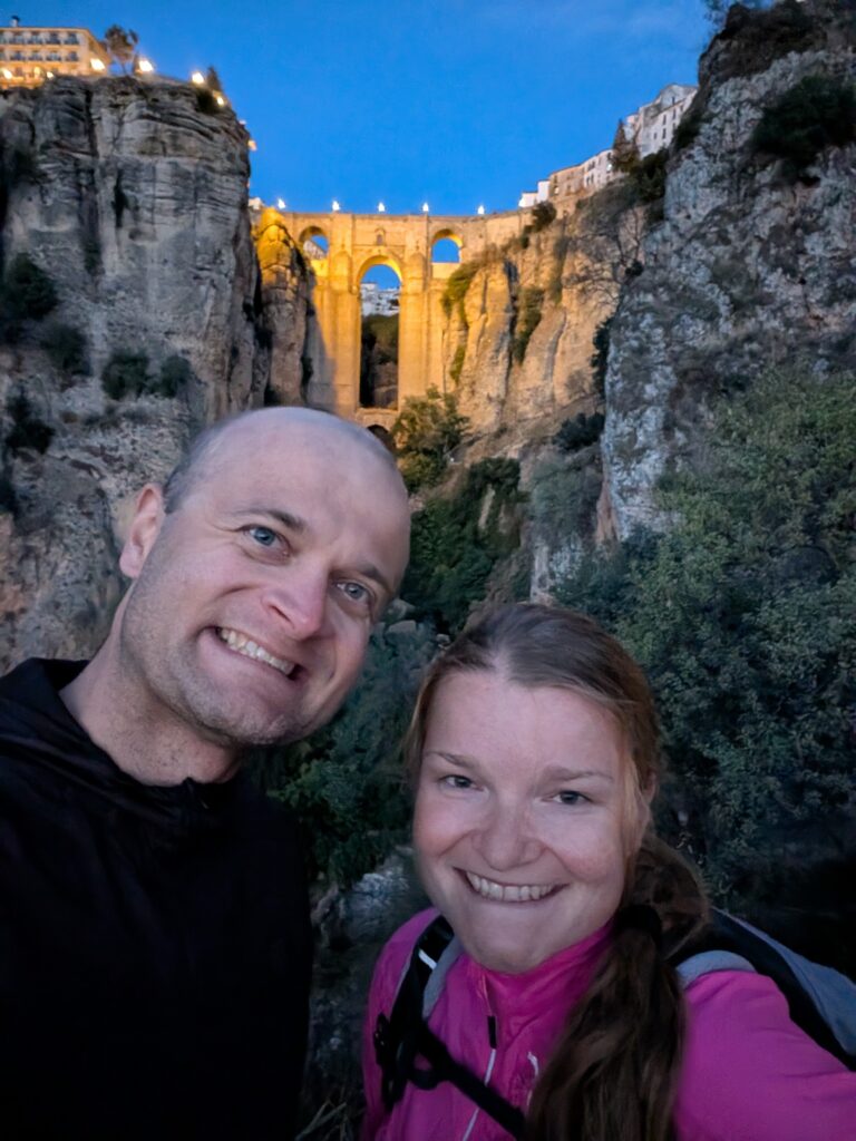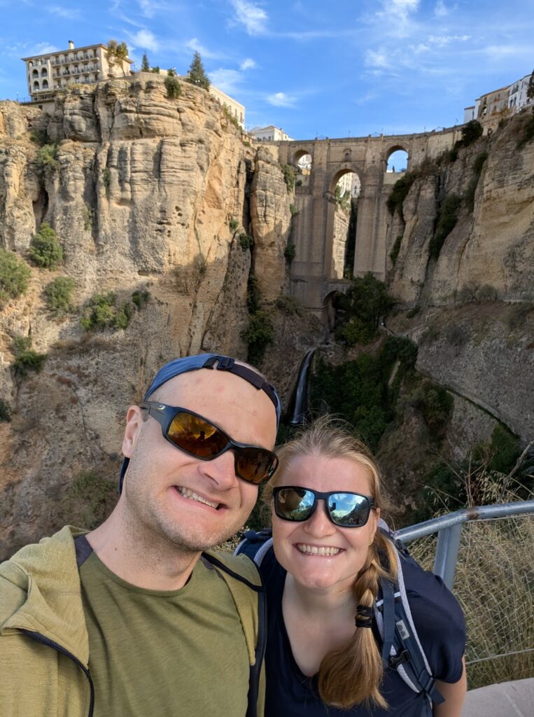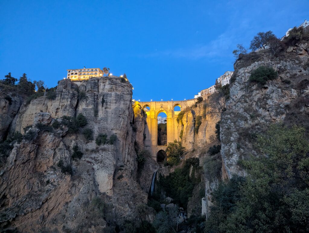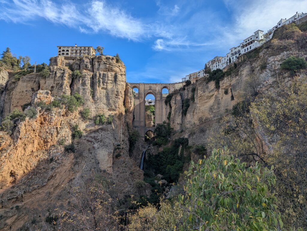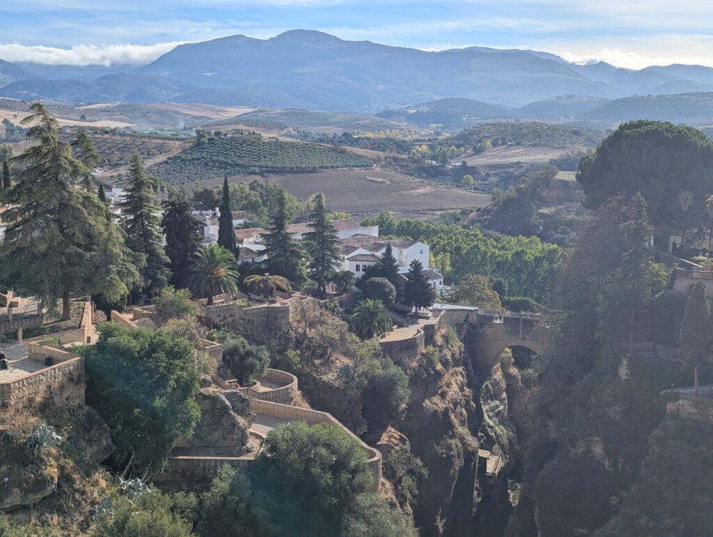 Spíme v Ronde, ktorá je na útese, ale na útes sa dá dostať celkom bezbolestne (bolesť bola predtým). Majú tu veľký most, a asi 55 výhľadov na most. Mia chce navštíviť samozrejme všetky, ale nakoniec sa uspokojí s tými najlepšími, zato 2x.