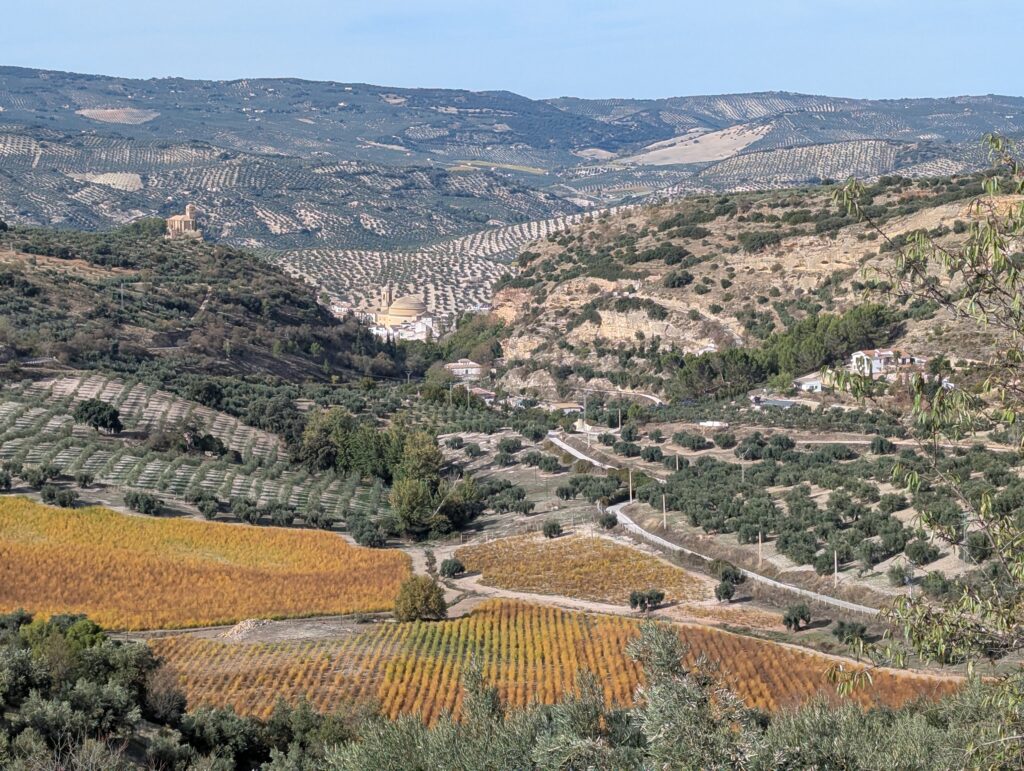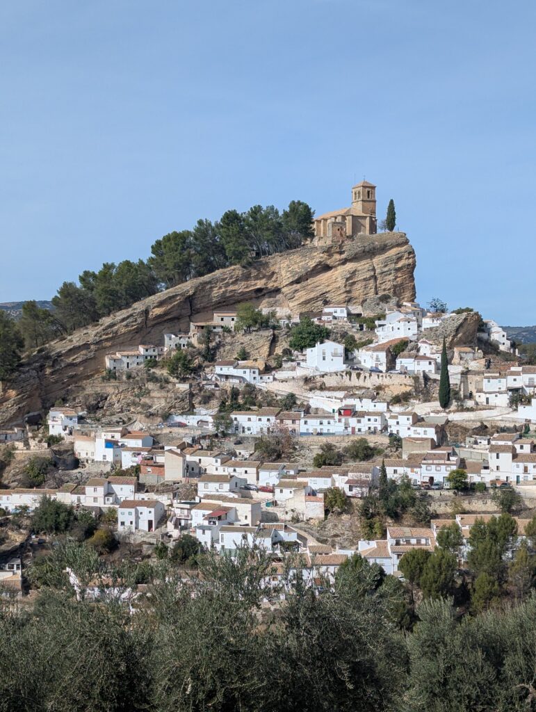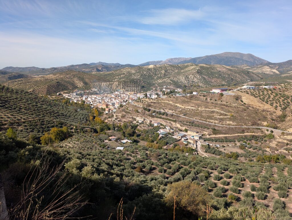 Keď sme už pri plánoch, ten pôvodný nás mal viezť cez maličké dedinky po dedinských cestách cez olivové háje… veď to už poznáte. V jednom momente sa môžeme rozhodnúť medzi priamejšou cestou a strmšou cestou cez Montefrio. Mia o Montefrio počula, vraj slávne, takže si doprajeme extra stúpanie.