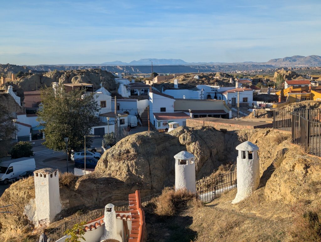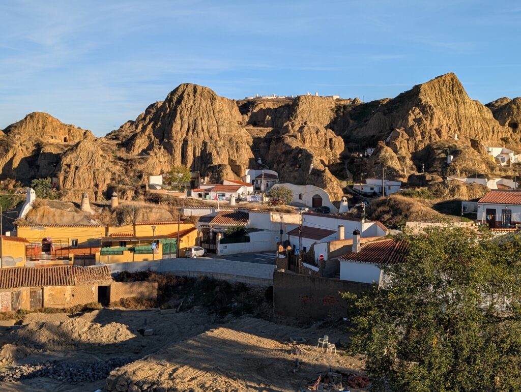 Alhambra nealhambra, nie je všetkému turistovaniu koniec. Pozrieme si, čo sa bez lístkov dá, obehneme vyhliadky na Alhambru z druhej strany, katedrálu, ideme do múzea vedy a potom busom do Guadix popozerať podivné jaskynné domčeky. Dolný koniec dediny je normálny, cesty autobusy obchody, ľudia v tejto oblasti chillovali od doby bronzovej. Horný koniec je tak trochu Hobitín IX, aj keď sa volá Barrio de Santiago a tu ich napadlo si hĺbiť domy do kôp zeme a tufových šutrov.