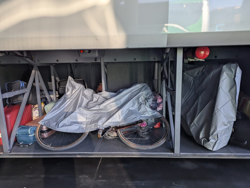 Tu by nám ALSA bus predal taštičky na bajky, ale ako podotkol ujo na informáciách, Číňan krížom cez ulicu ich má tiež a za štvrtinu ceny. Bajky musia do busu ísť zabalené, asi aby sa tvárili ako kufor a nie ako dvojkolesový autobus.