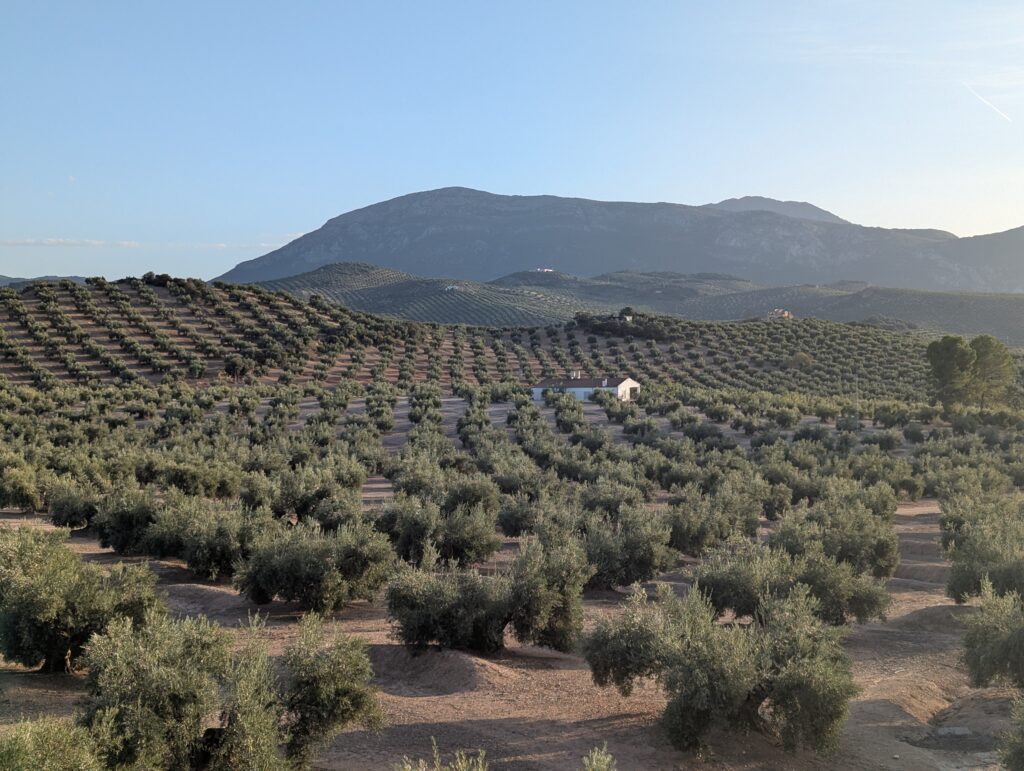 V celej Andalúzii je okolo 70m olivových stromov, z čoho asi 40m je v provincii Jaén, samozvanom “hlavnom meste olivového oleja”. My sme videli za našu doterajšiu cestu odhadom tak desatinu všetkých stromov. Aspoň pocitovo. Sú všade. Dovliekli ich sem už Feničania 1050 pred Kristom, ale naplno to roztočili až Rimania.
