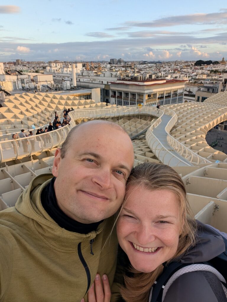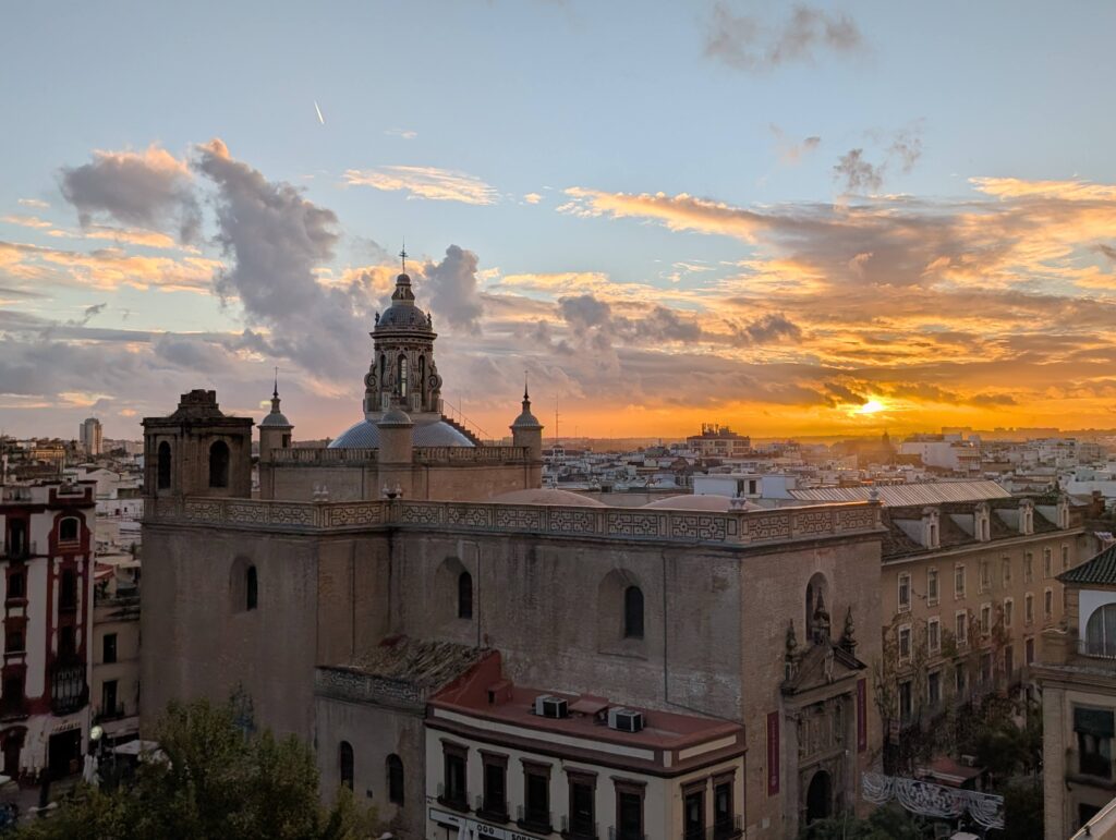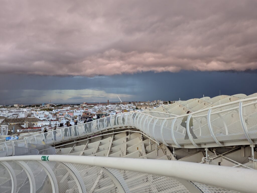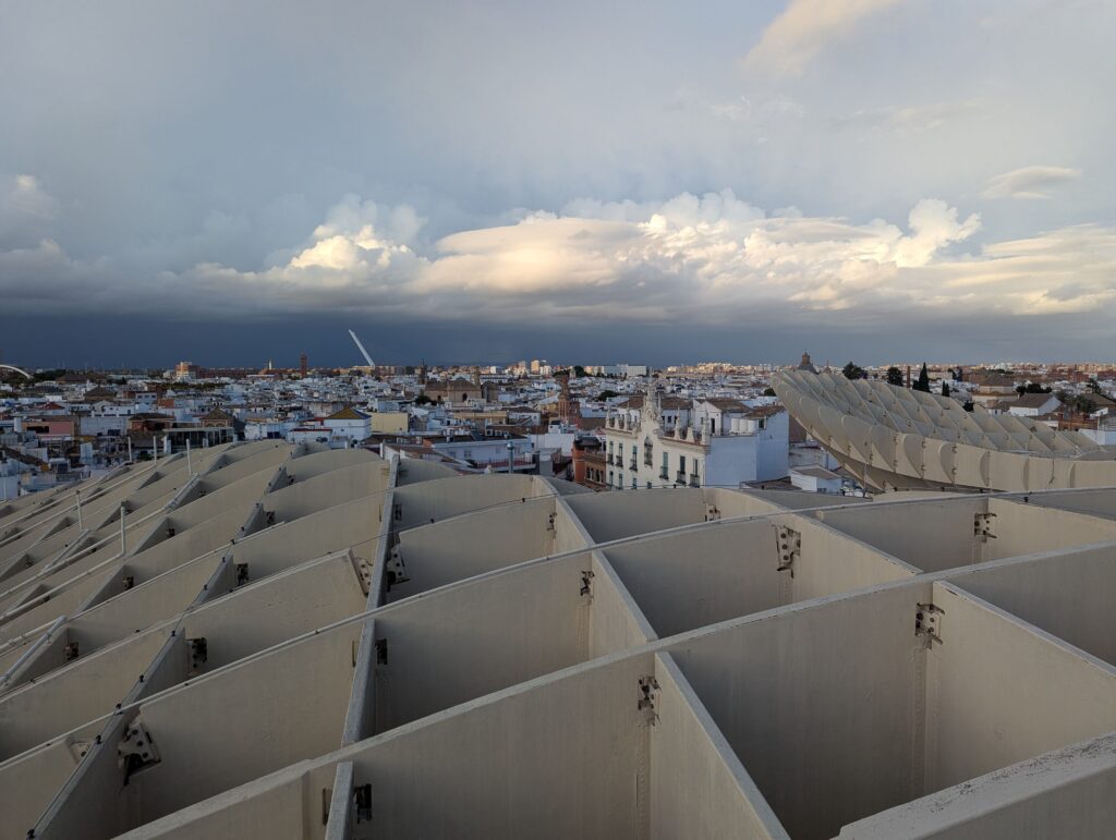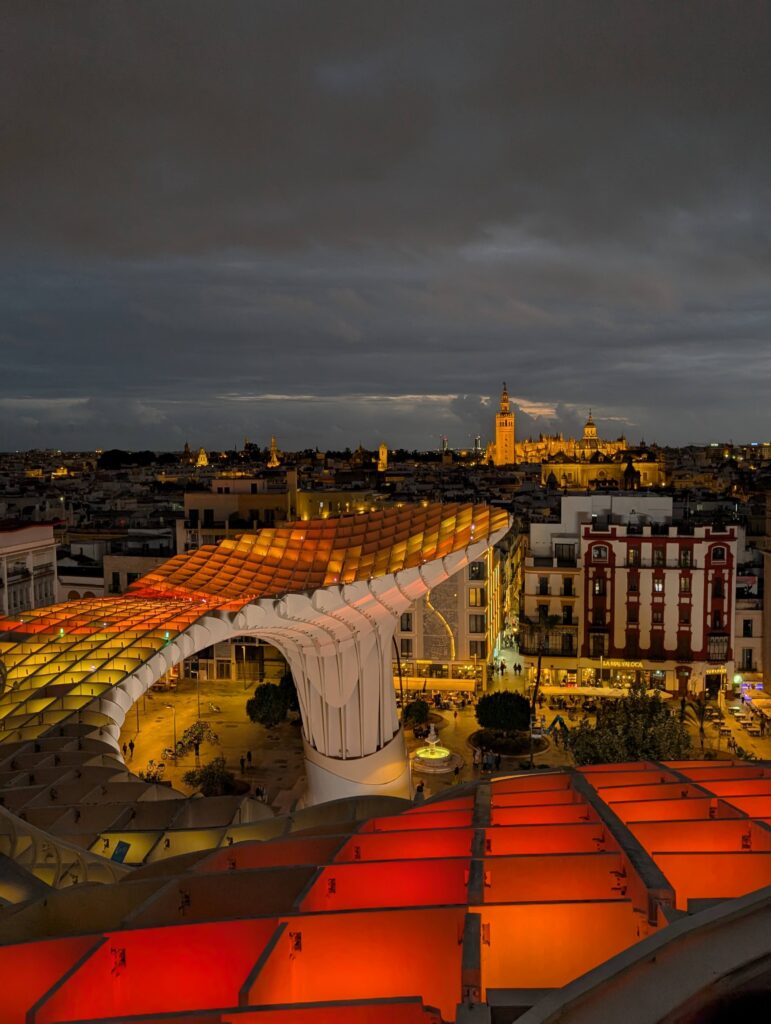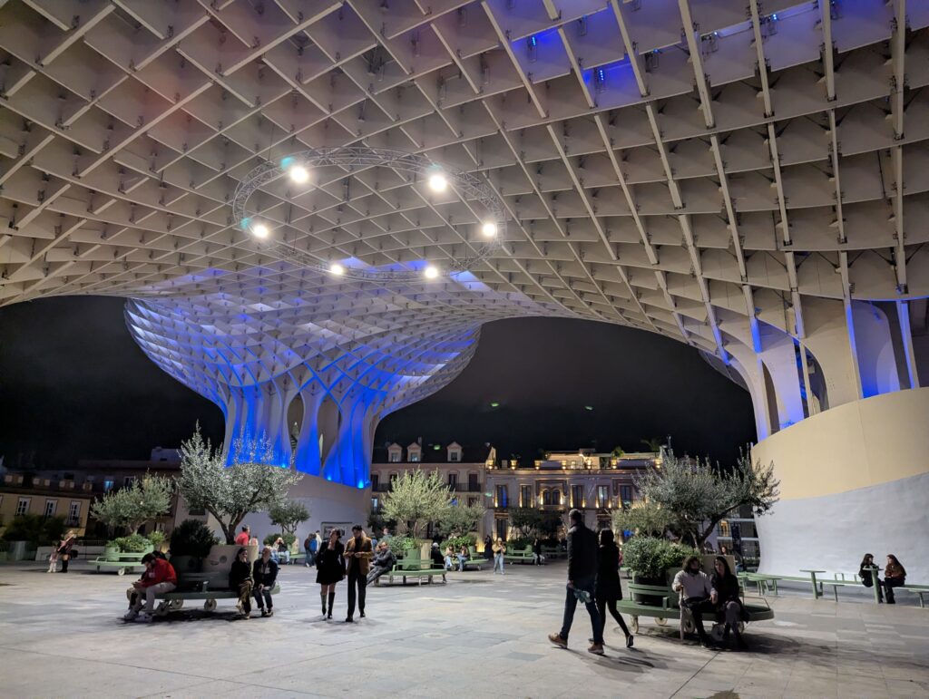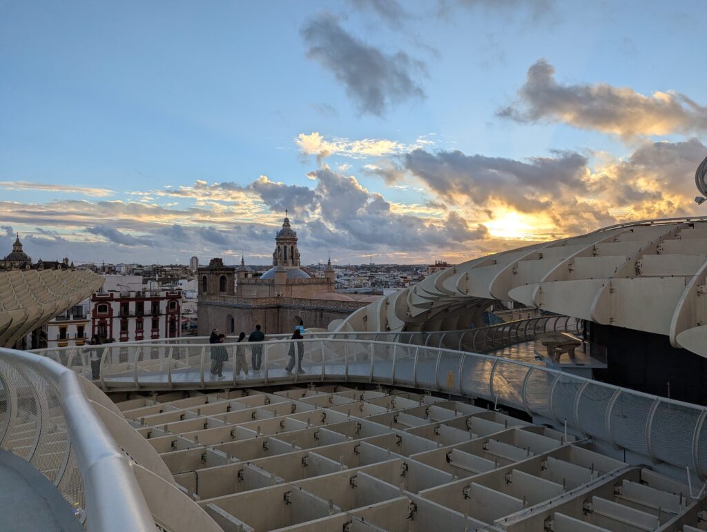 – Setas de Sevilla – sevillské drevené hríby v centre, vraj najväčšia drevená stavba na svete. Postavil ju tu dáky Nemec namiesto hnusného parkoviska čo tu bolo predtým (a pred ním dáky kostol, čo schátral a zbúrali ho). Väčšina ľudí sa sem driape na západ slnka, a je celkom dobrý výhľad na okolie. Po západe slnka zapnú svetielka a začne sa to pravé vytváranie obsahu pre sociálne siete, lebo je všetko ňuňu farebné a bliká.