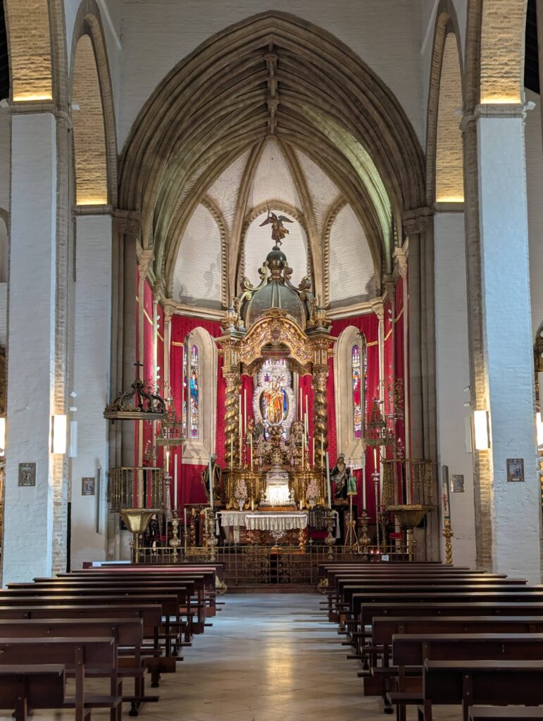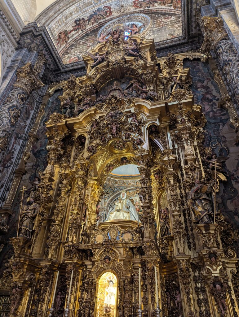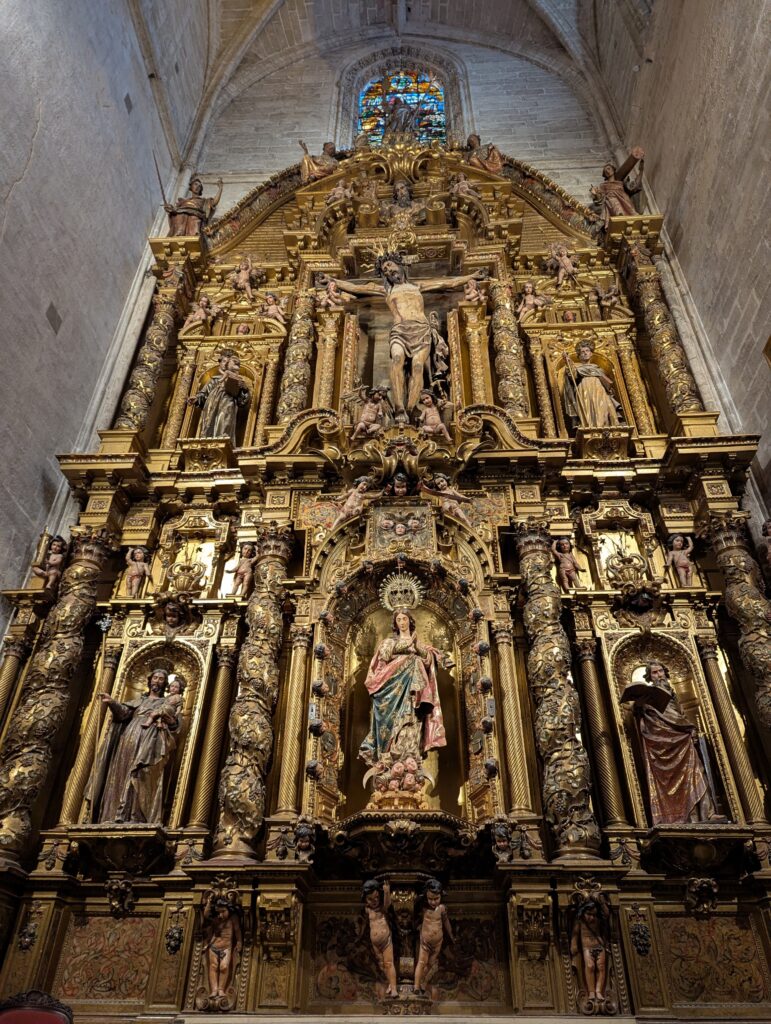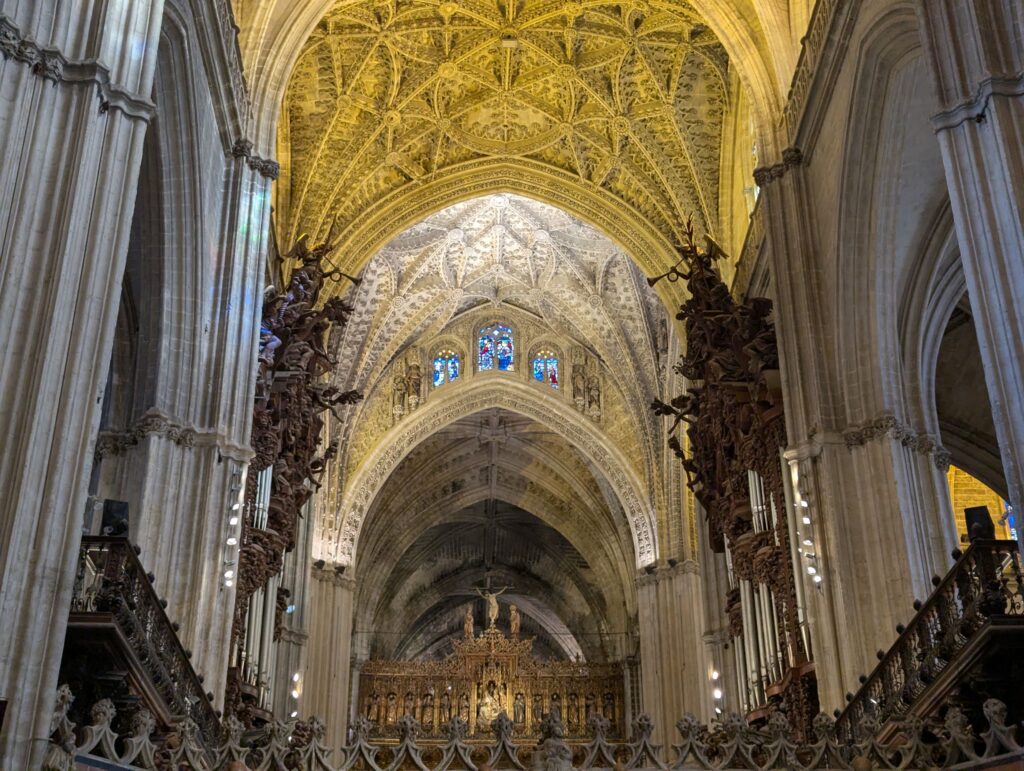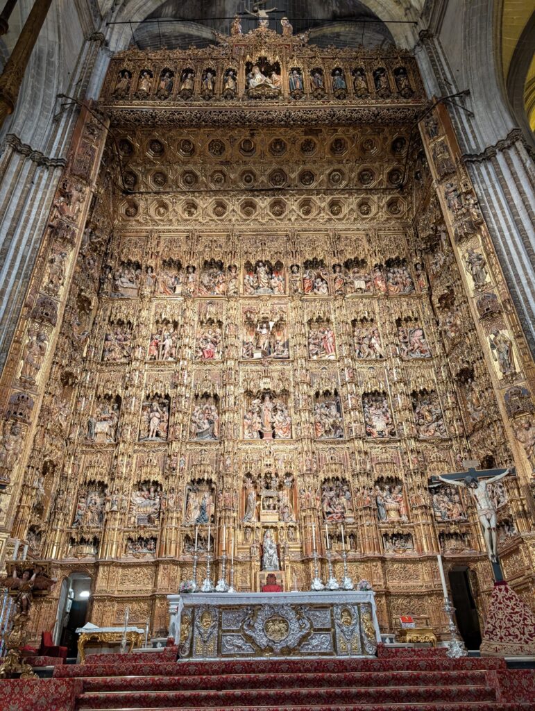 – Cathedral Santa Maria de la Sede – dominanta mesta, ktorej súčasťou je aj veža La Giralda prestavaná z minaretu mešity, ktorá tu stála predtým (haha, známe?). Veža vraj prežila dáke veľké zemetrasenia v 1356 (to zničilo tú mešitu) a lisabonské v roku 1755 (to zrovnalo so zemou Lisabon a zabilo asi 50k ľudí), preto je cool. A prežila ich preto, že vnútri nemá schody, ale rampu, aby sa v nej kostolníkovi dobre bicyklovalo. Katedrála sama o sebe je gotická, dokonca vraj najväčšia gotická katedrála na svete, čiže vysoký strop a veľa miesta, aby sa do nej mestili všetci tí turisti. Obrazy by mali byť tiež gotické (temné a štíhli modeli), ale nie všetky sú. Zaujímalo by ma, jak to v minulosti fungovalo – prišiel dáky kardinál za Michelangelom a že “počuj starý, sprav mi 2 gotické, jeden renesančný a jeden barokový obraz”? Aha, a okrem toho je tu (aspoň zčasti) pochovaný jeden pánko. Teda, asi je ich tu viac, ale väčšia má len dáky ten nazdobený sarkofág dakde v rohu, zatiaľ čo tento má levitujúcu truhlicu nesenú 4 nadživotne veľkými sochami kráľov. A je to samozrejme váš obľúbenec, Cristóbal Colón, alebo teda známy pod domácim nešpanielskym menom, Krištof Kolumbus! Aplaus! PS: Po smrti jeho ostatky cestovali skoro toľko ako za živa!