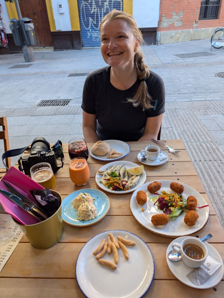 Trochu hnedého lemovania na záver – posledný deň ma všetci tí kýchajúci turisti v uzavretých priestoroch zmohli, a tak som zostal ležať, zatiaľ čo Mia bola loviť medikamenty a objavovať zatiaľ neobjavené zákutia mesta sama. Cádiz a Jerez a všetky tie veľké pivnice s miliónmi litrov sherry, ktoré treba ochutnať, si necháme na neskôr. Rovnako aj elaborátne ochutnávky iberijských predných a zadných nožičiek – nie že by sme zjedli jamónu málo – ale ešte by sa ho tam zmestilo.